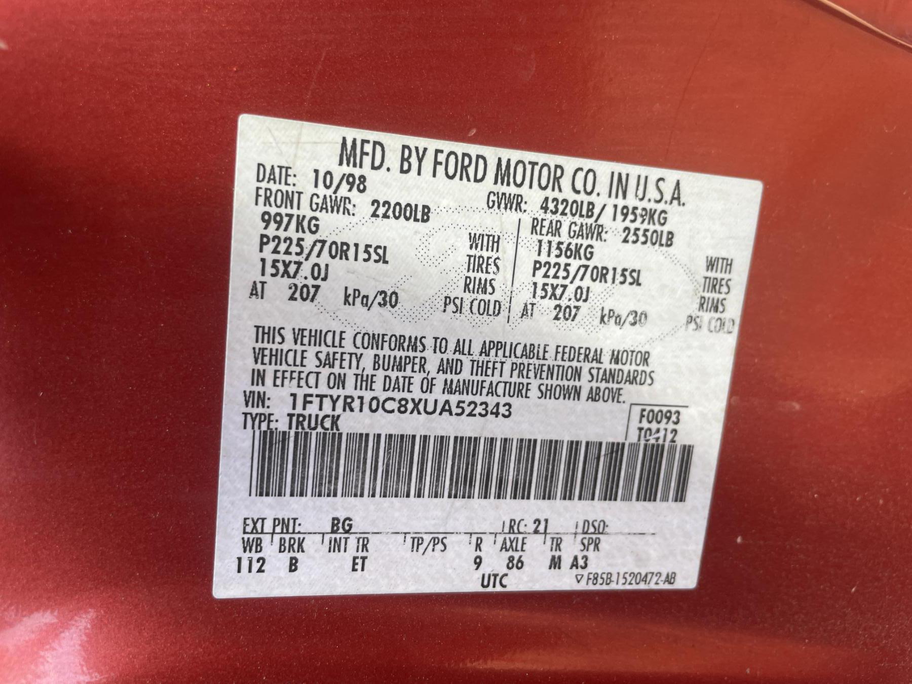 Vehicle ID Number: 1FTYR10C8XUA52343