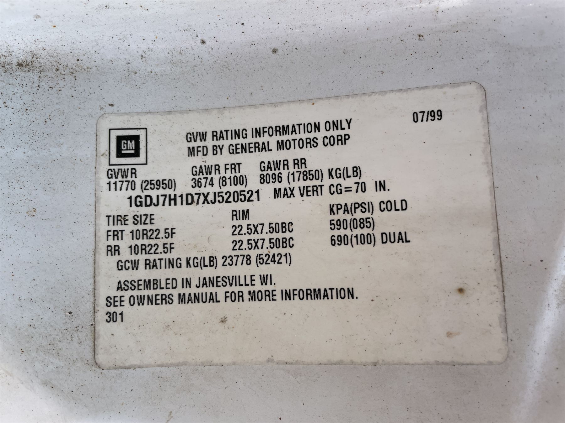 Vehicle ID Number: 1GDJ7H1D7XJ520521