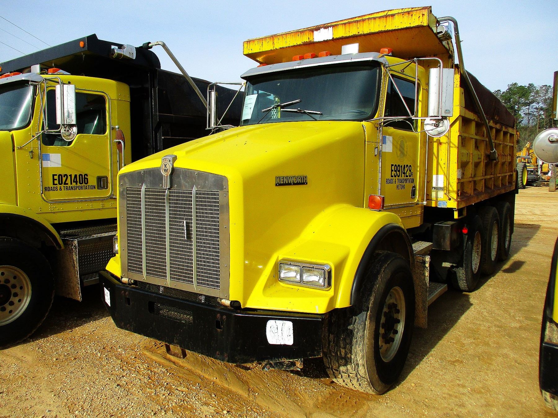 1999 KENWORTH T800 DUMP, VIN/SN:1NKDLB0X9XJ797188 - TRI-AXLE, 475 HP CAT DIESEL ENGINE, 10 SPEED TRANS, 46K REARS, 20K FRONT, 16' OX DUMP BODY, 11R24.5 REAR TIRES, 425/65R22.5 FRONT TIRES, ALUM FRONT, ODOMETER READING 182,299 MILES (COUNTY OWNED)