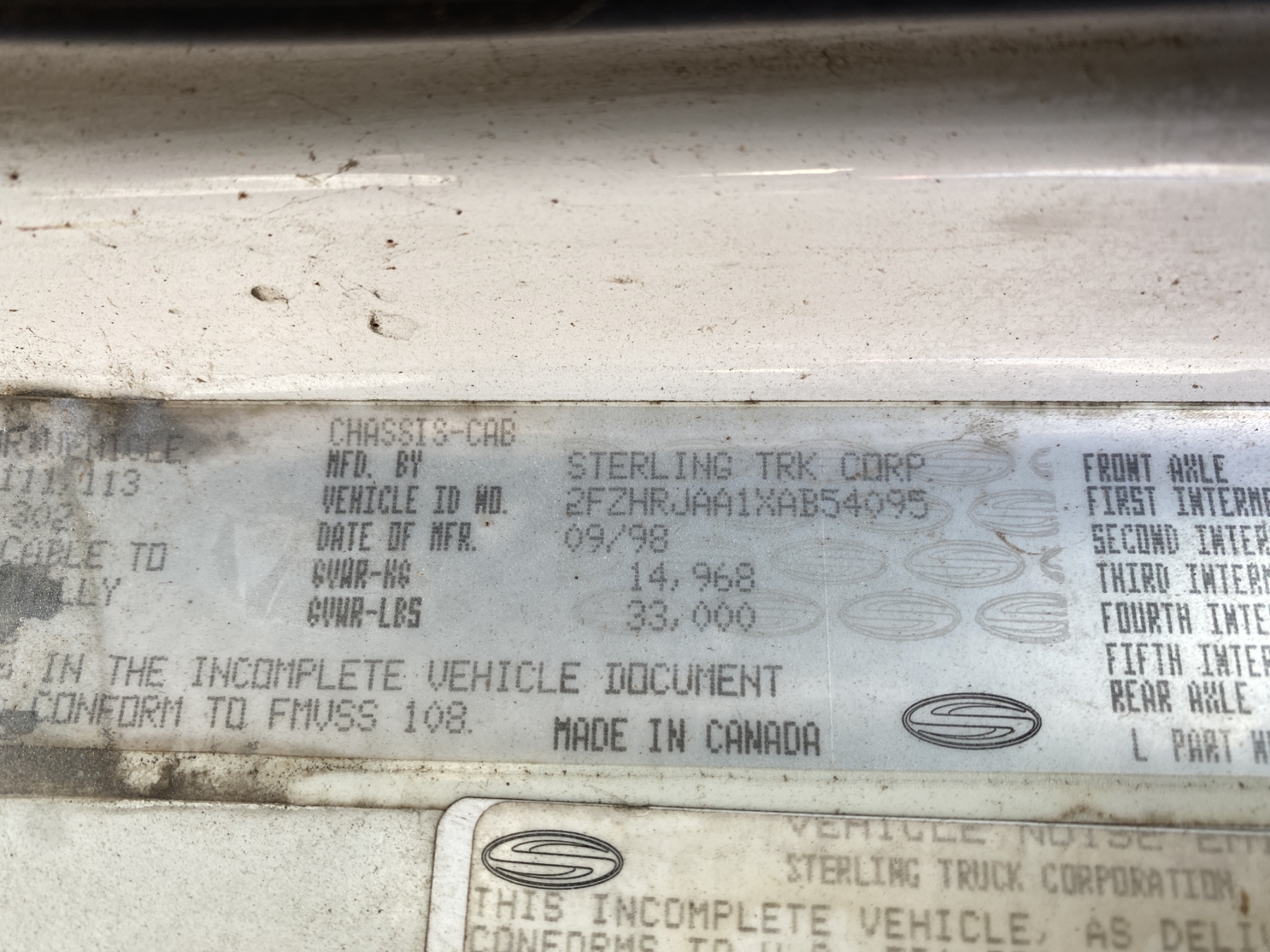1999 STERLING DUMPSTER CARRIER