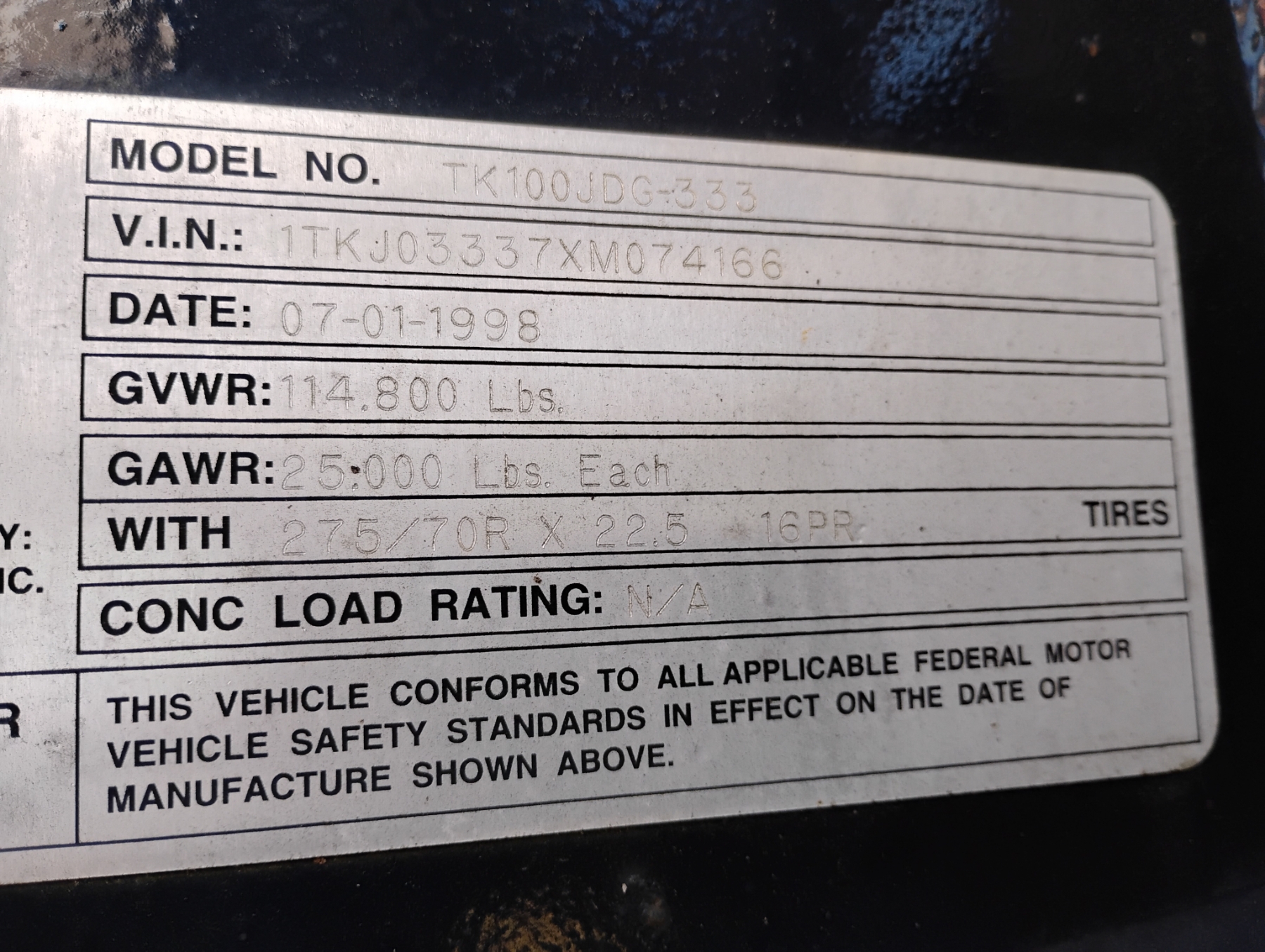Vehicle ID Number: 1TKJ03337XM074166