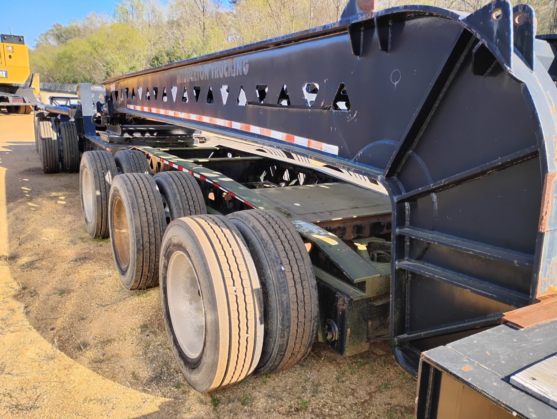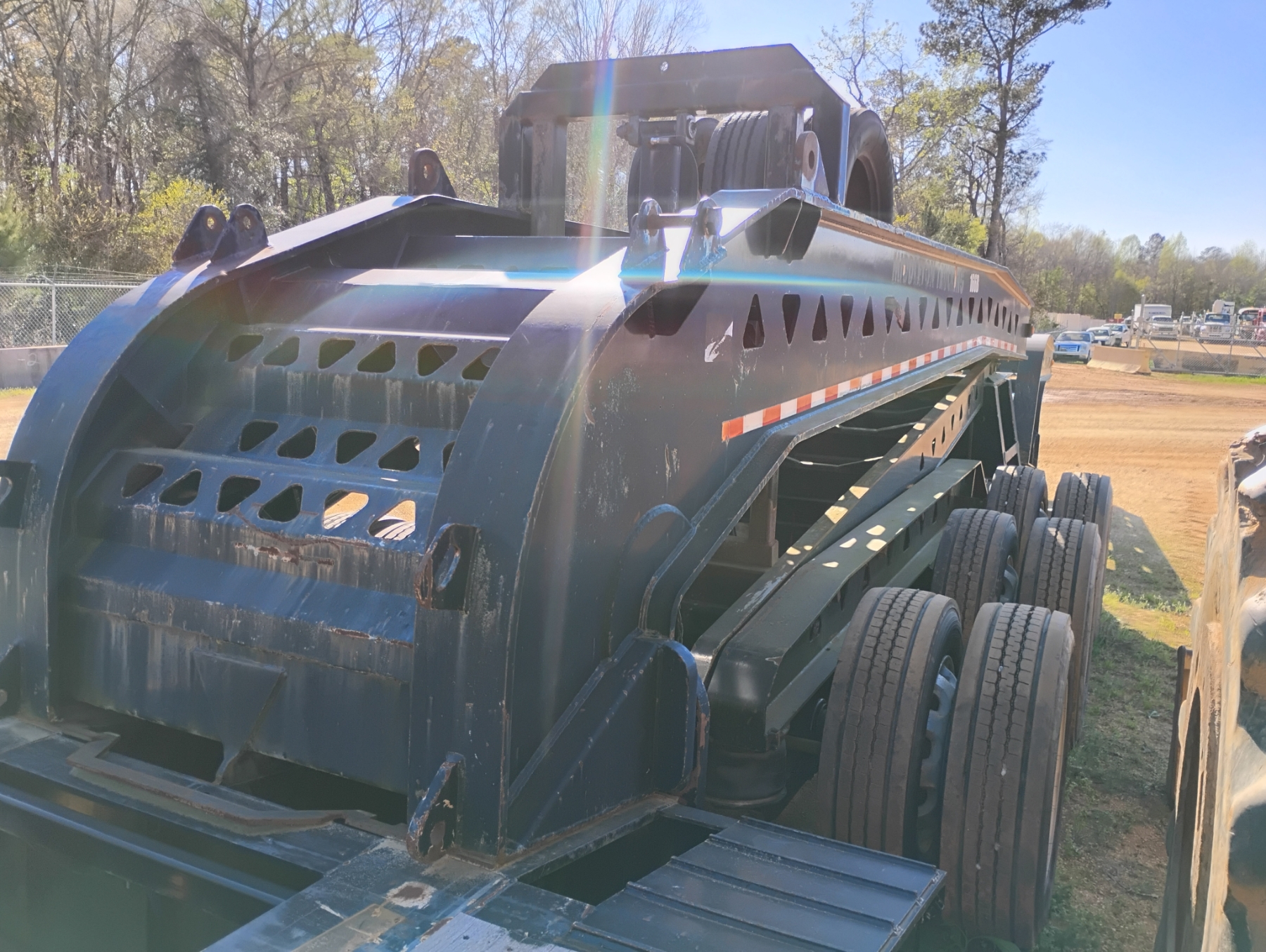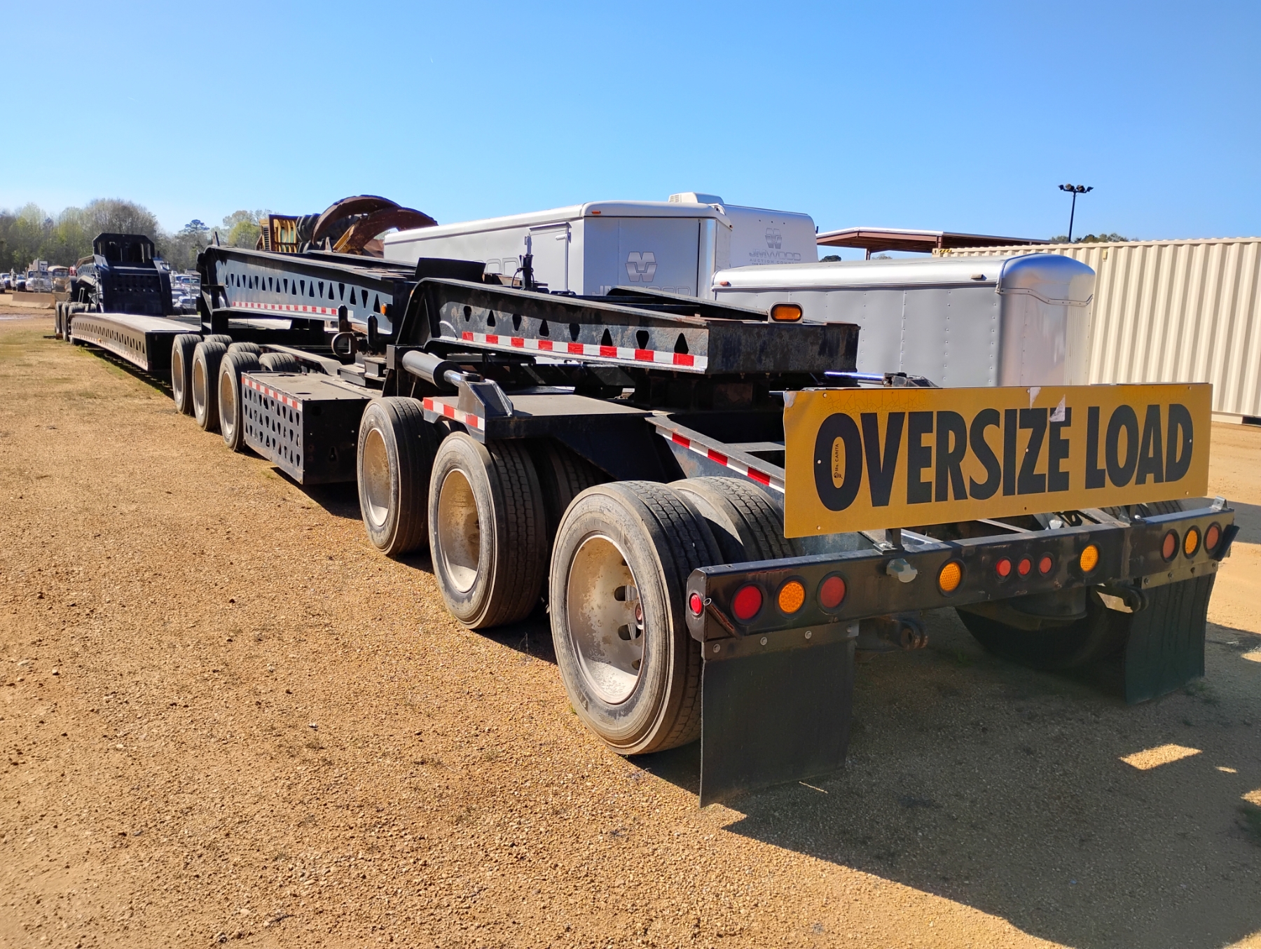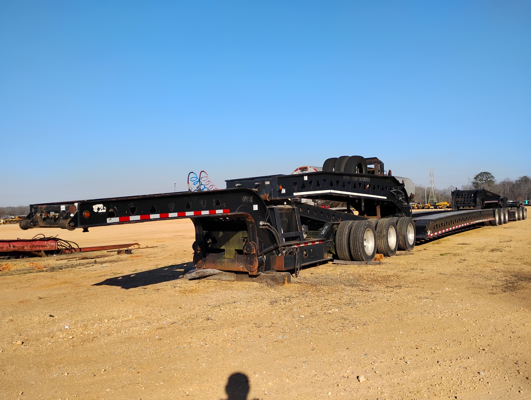 (3+3+3) configuration, 72 Ton, 36' well, 108" width, Trail King TK100JDG-333 Tri Axle Jeep, Trail King steerable 6 axle dolly, (2) pony motors, air ride, 275/70R22.5 tires, all alum, (LOCATED BY CHECK-IN BUILDING)