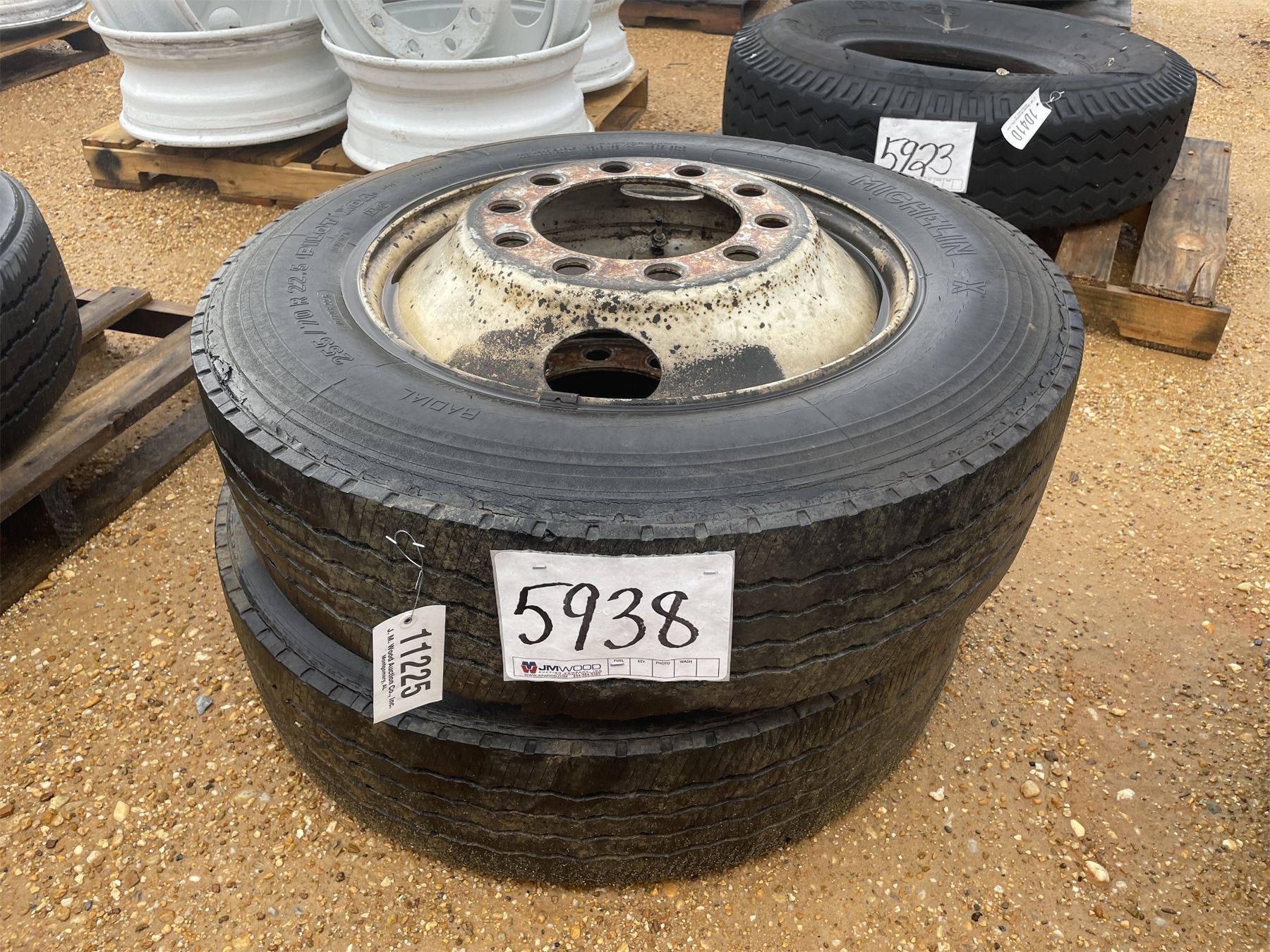 (2) 255/70R22.5 TIRES W/ RIMS