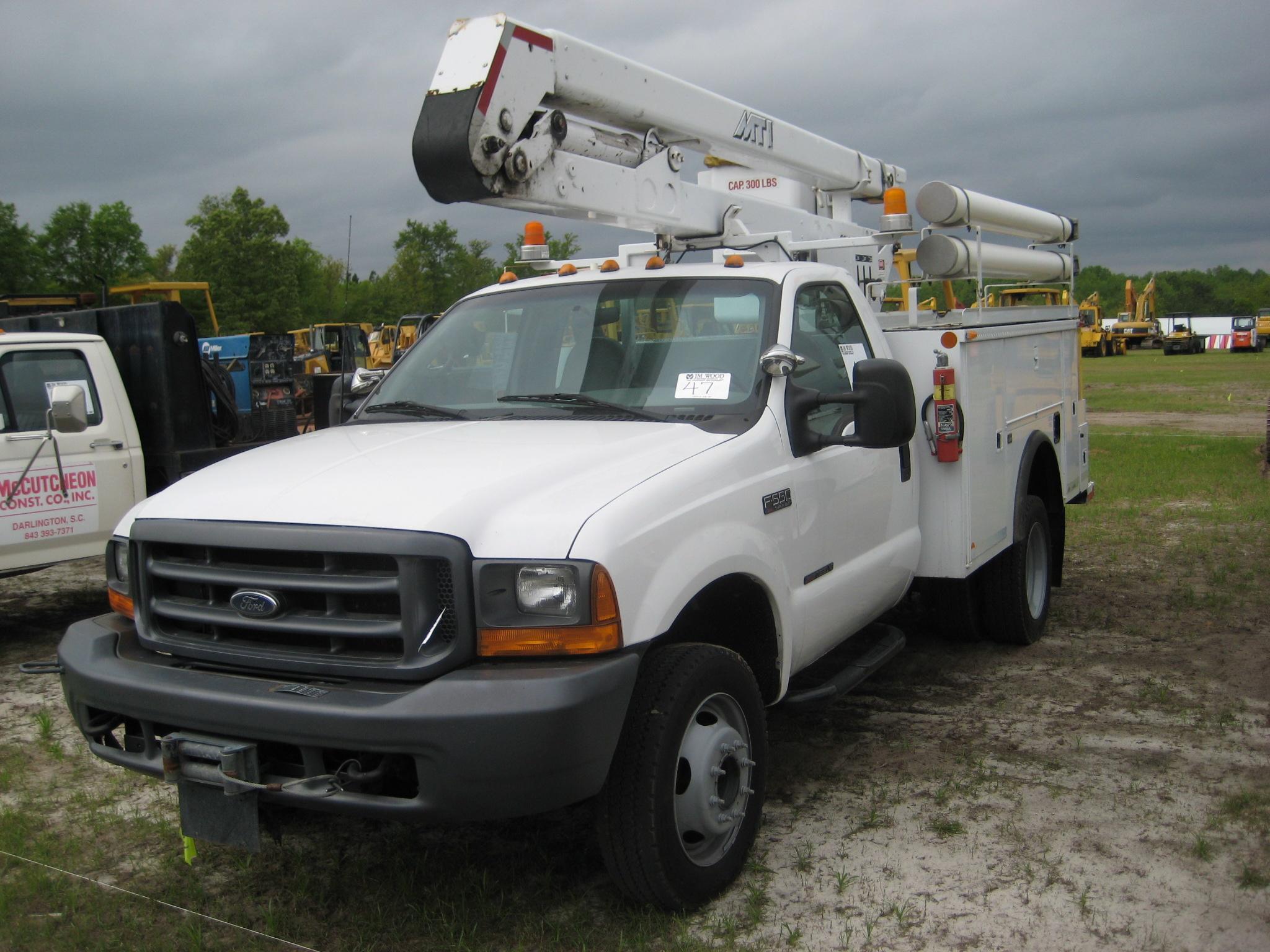 2000 FORD F550 BUCKET TRUCK, S/N D18466 POWER STROKE DIESEL, A/T, P/S, A/C, MTI32TP HYD BOOM, S/N 83590008, 32' REACH, 1 MAN BUCKET, TOOL BOX