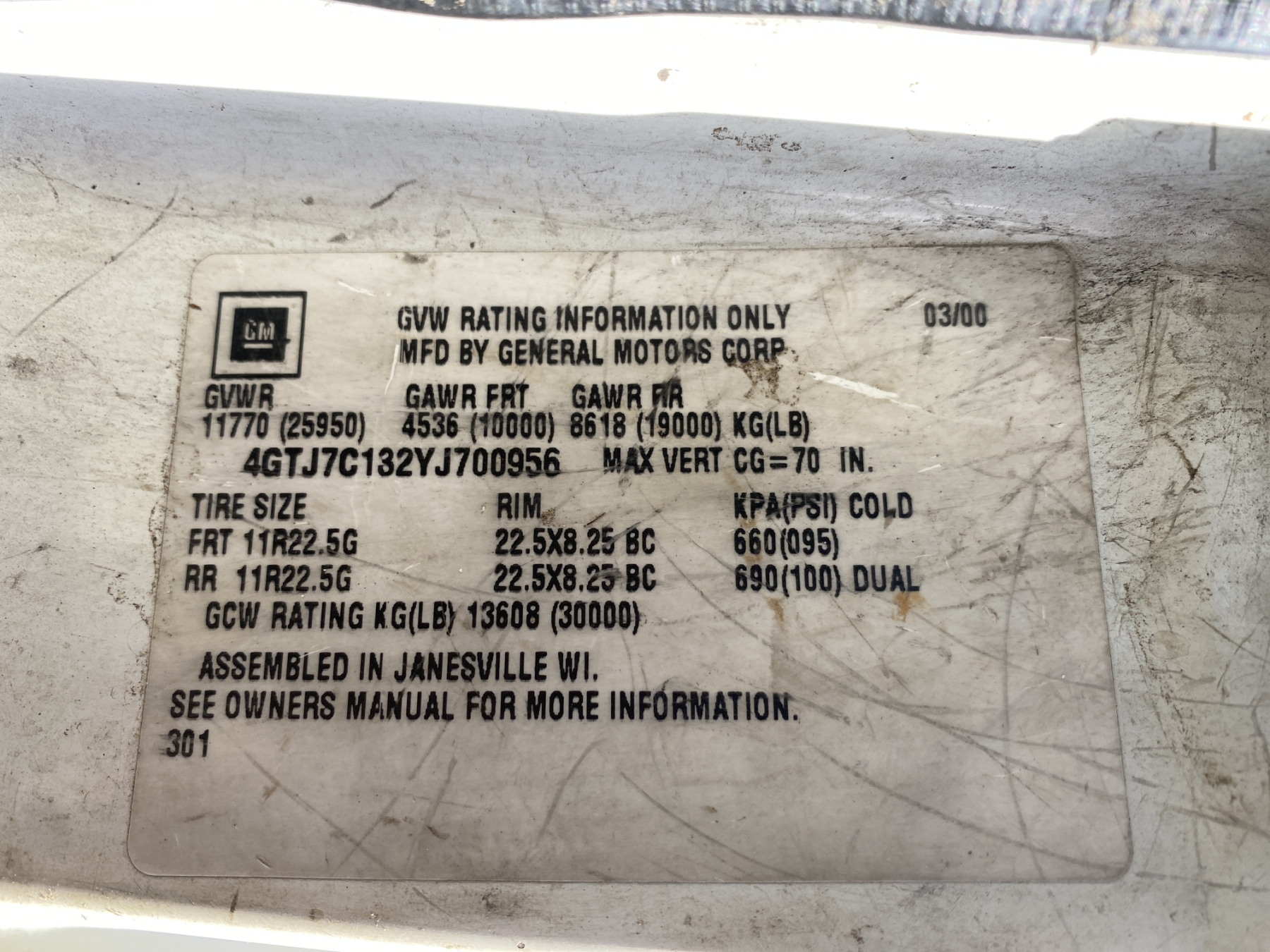 Vehicle ID Number: 4GTJ7C132YJ700956