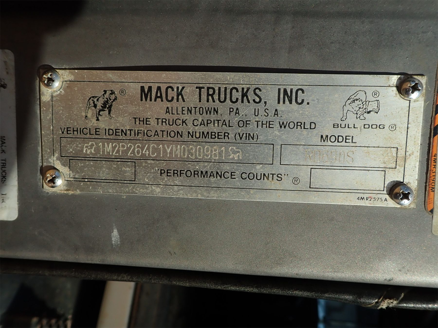 Vehicle ID Number: 1M2P264C1YM030981
