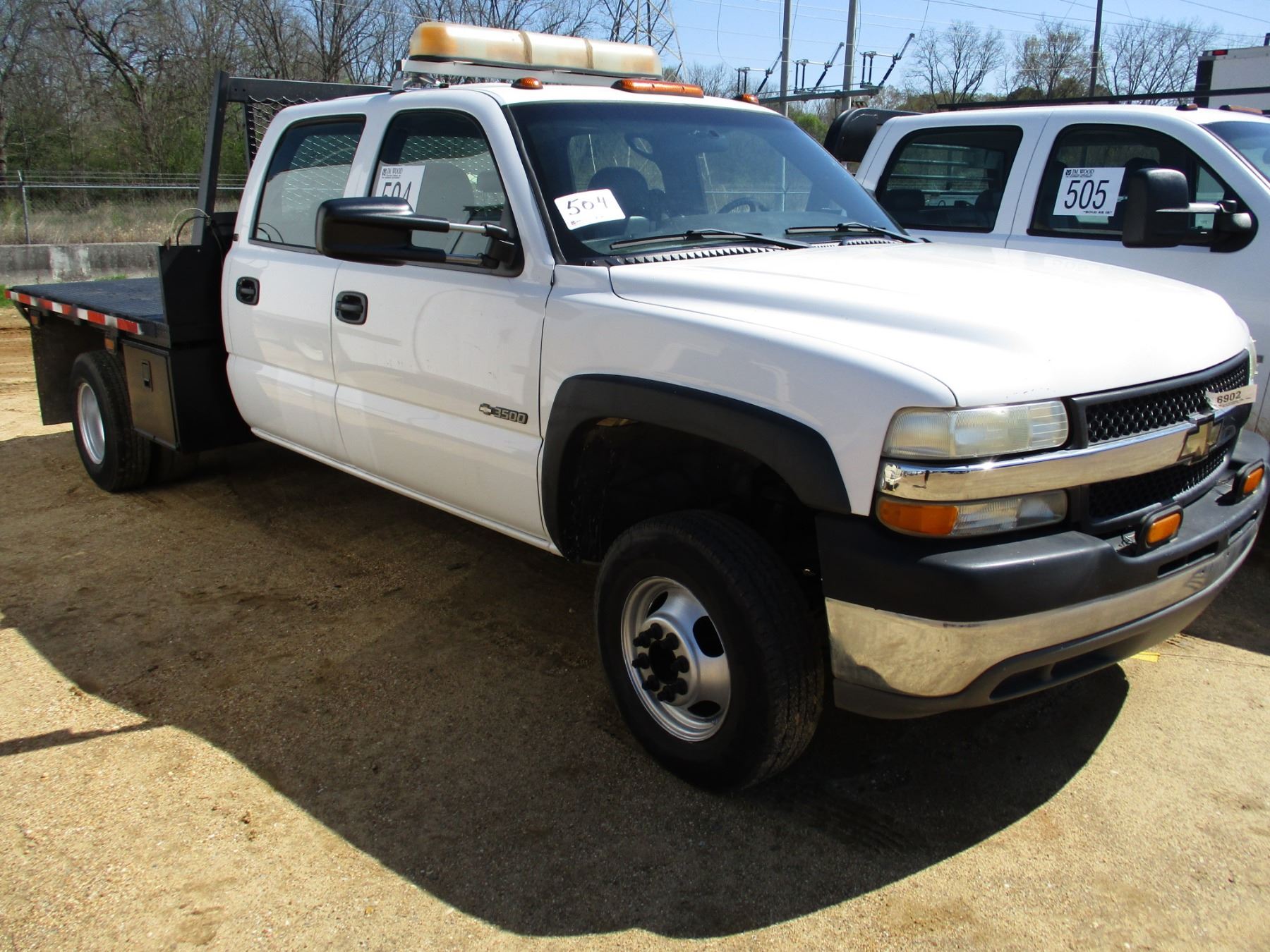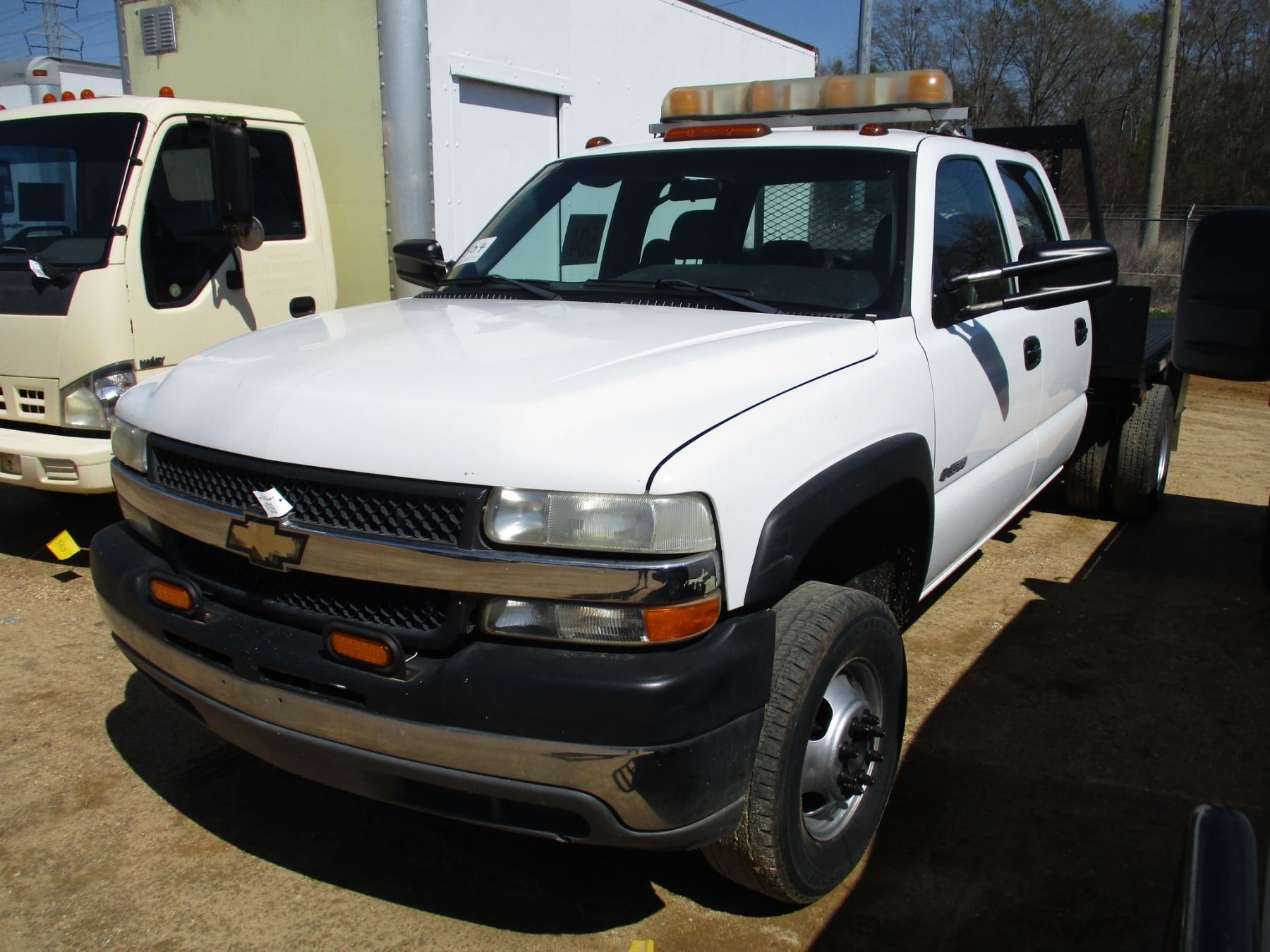 2001 GMC 3500 FLATBED, VIN/SN:1GBJC33U01F182703 - S/A, DUALLY, GAS ENGINE, A/T, FLATBED BODY, ODOMET