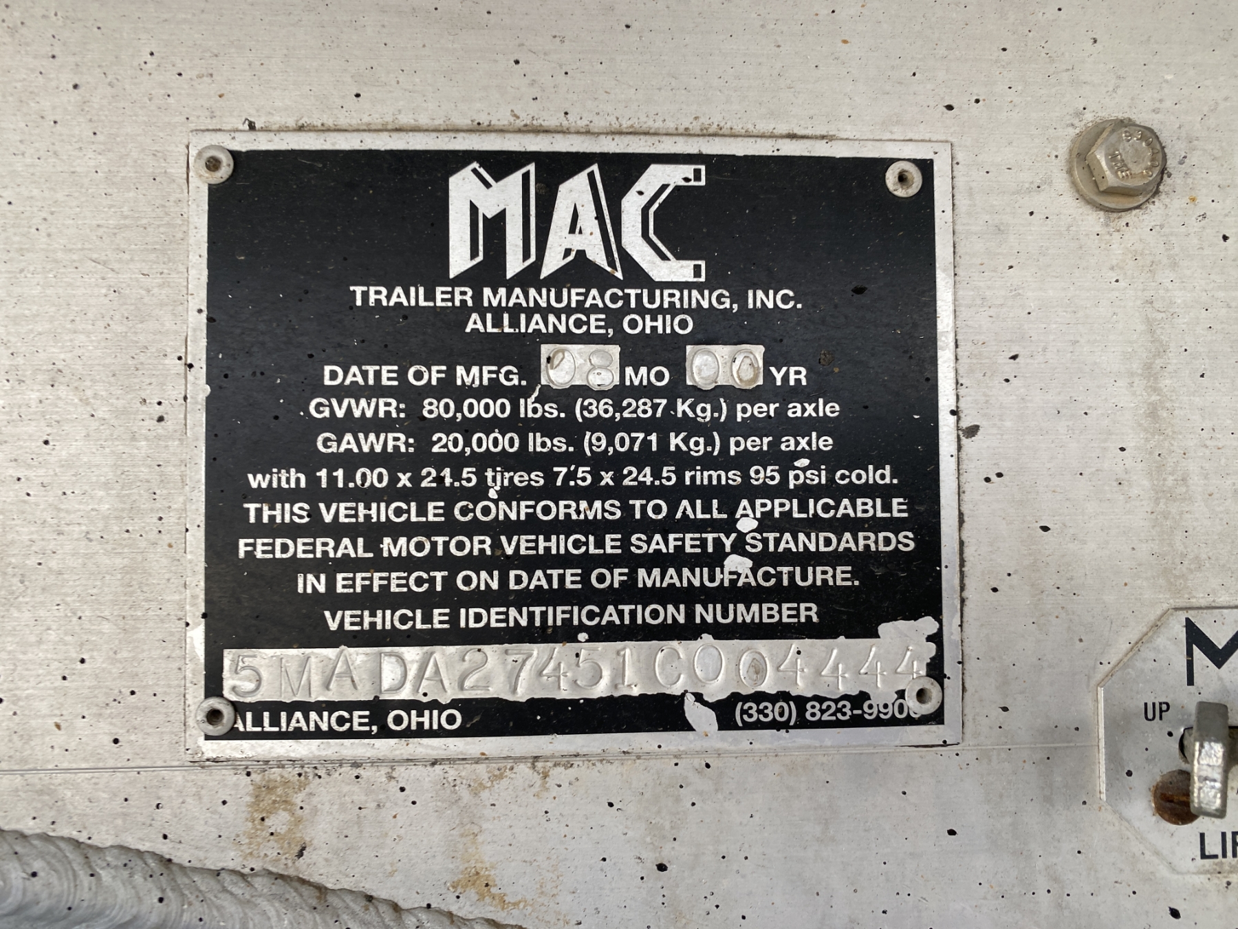 Vehicle ID Number: 5MADA27451C004444