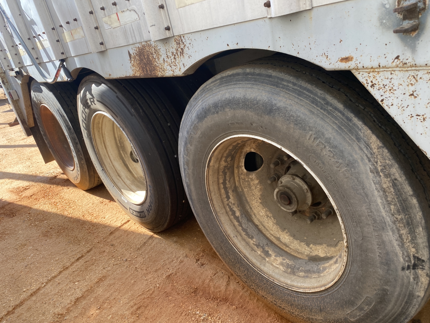Tri Axle, possum belly, 45' length, open top, 11R24.5 tires
