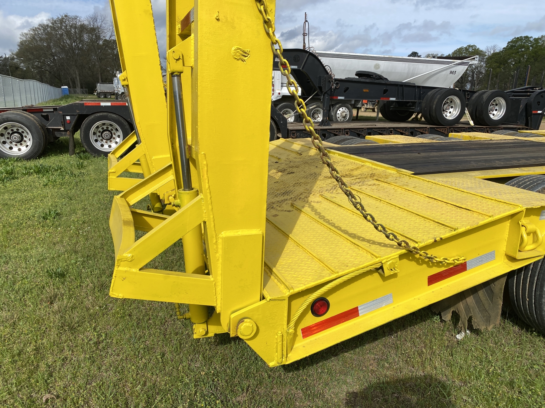 T/A, detach, NGB, 24' well, 102" width, dovetail, hyd ramps, pony motor, 255/70R22.5 tires