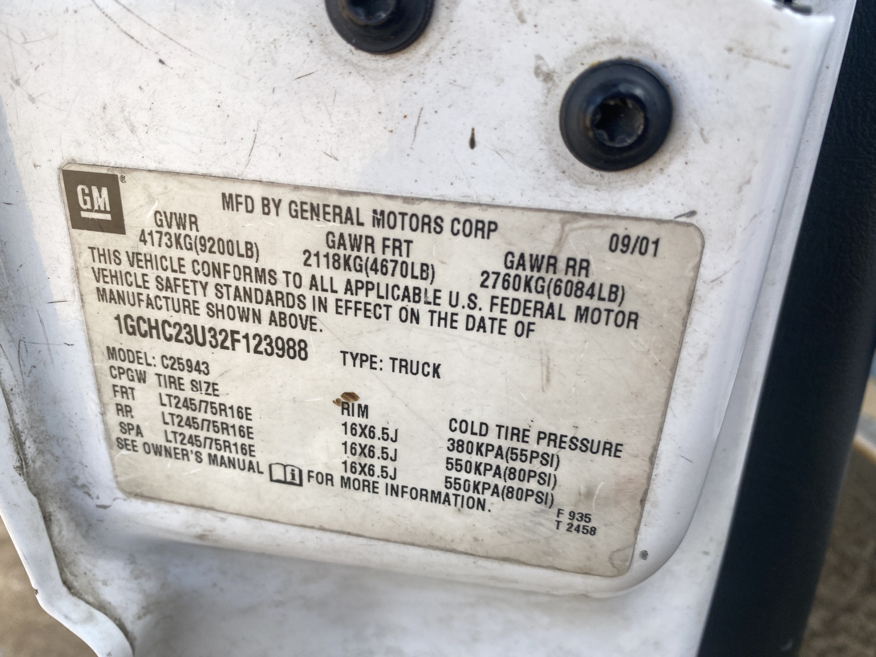 Vehicle ID Number: 1GCHC23U32F123988