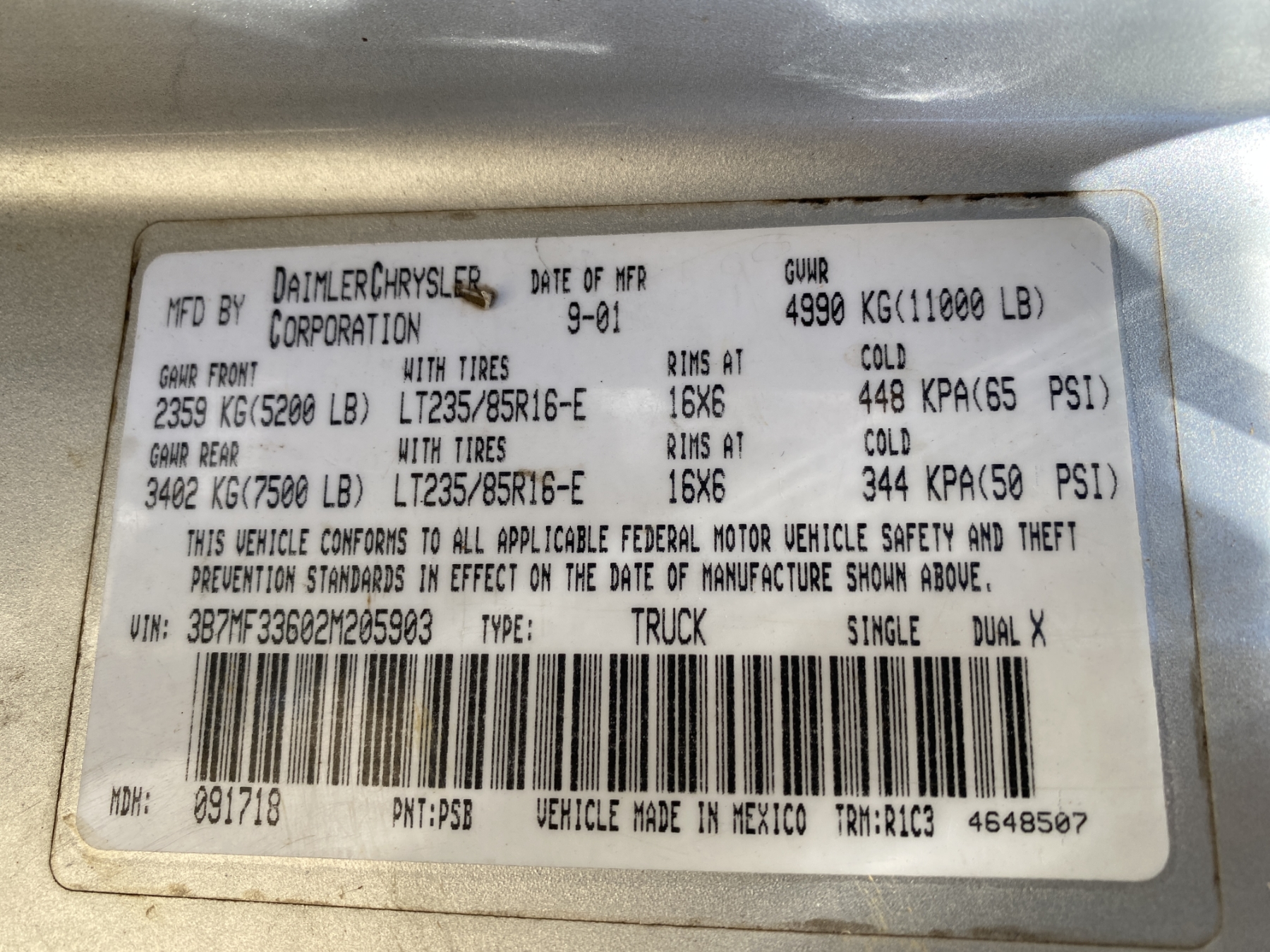 Vehicle ID Number: 3B7MF33602M205903
