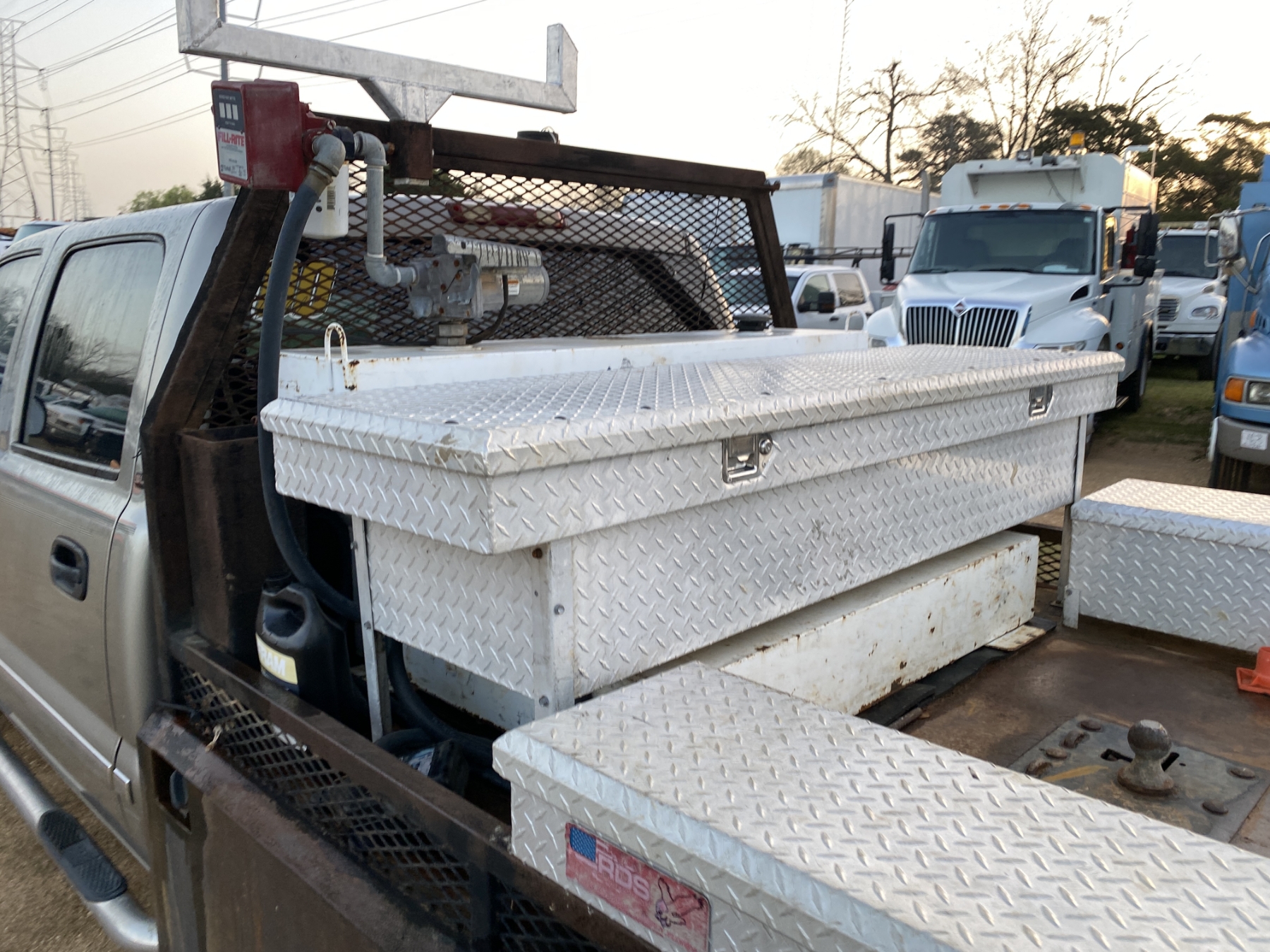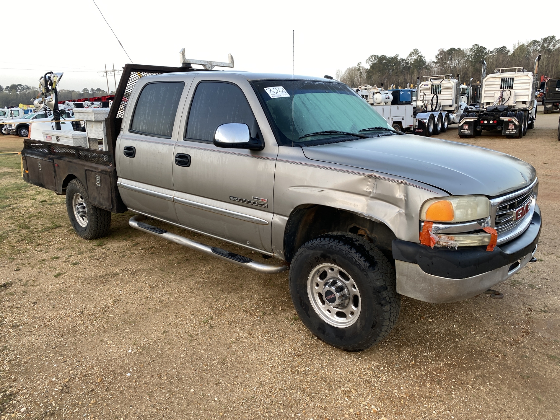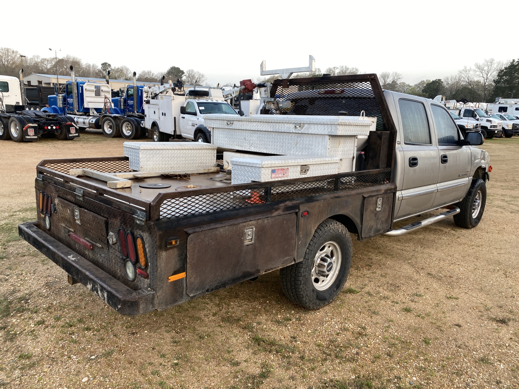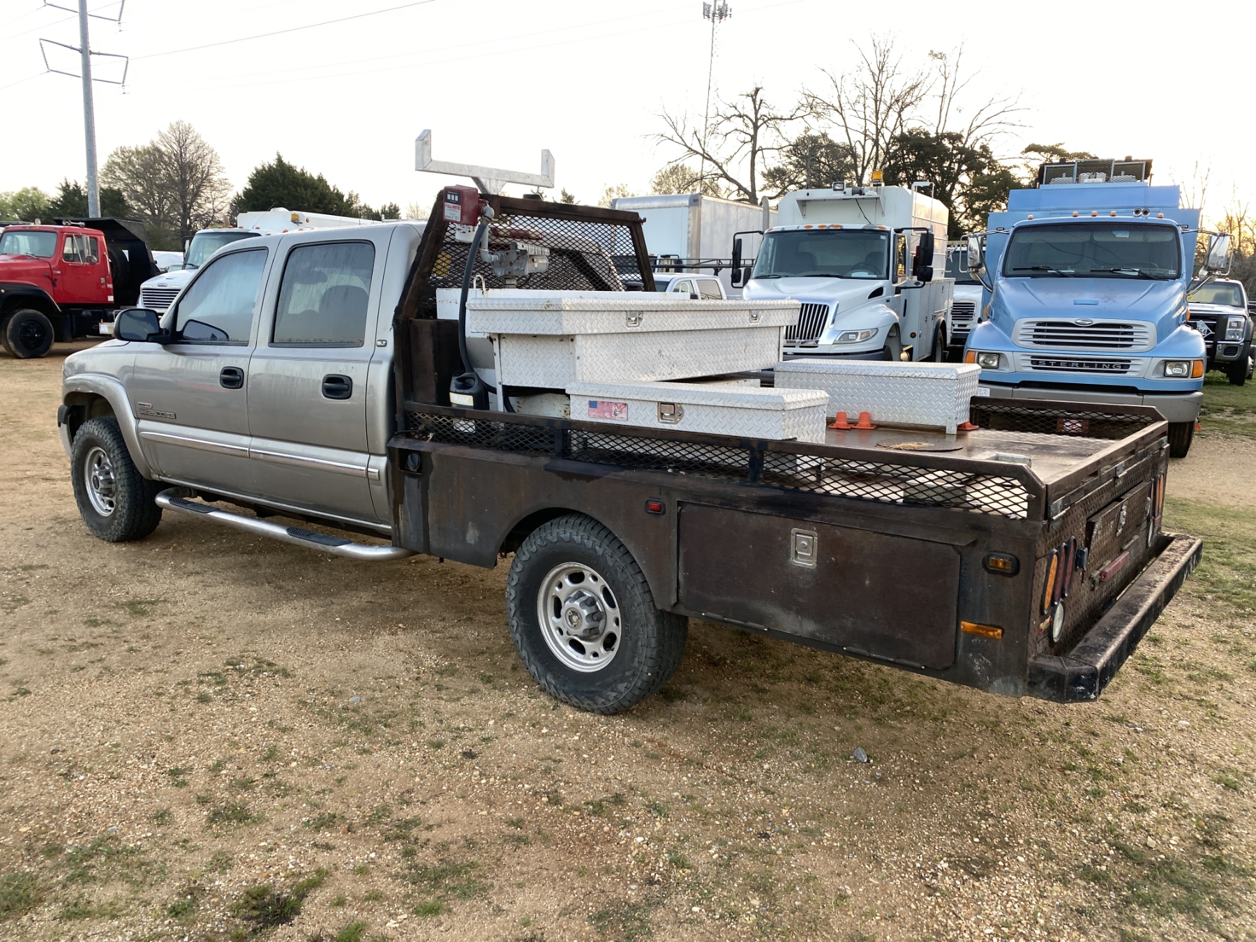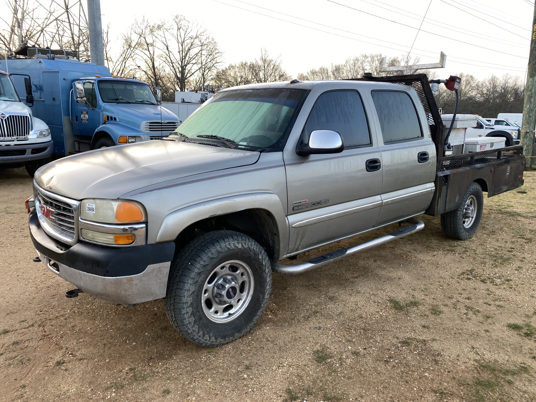 4x4, crew cab, Duramax diesel, A/T, 9' flatbed, fuel tank