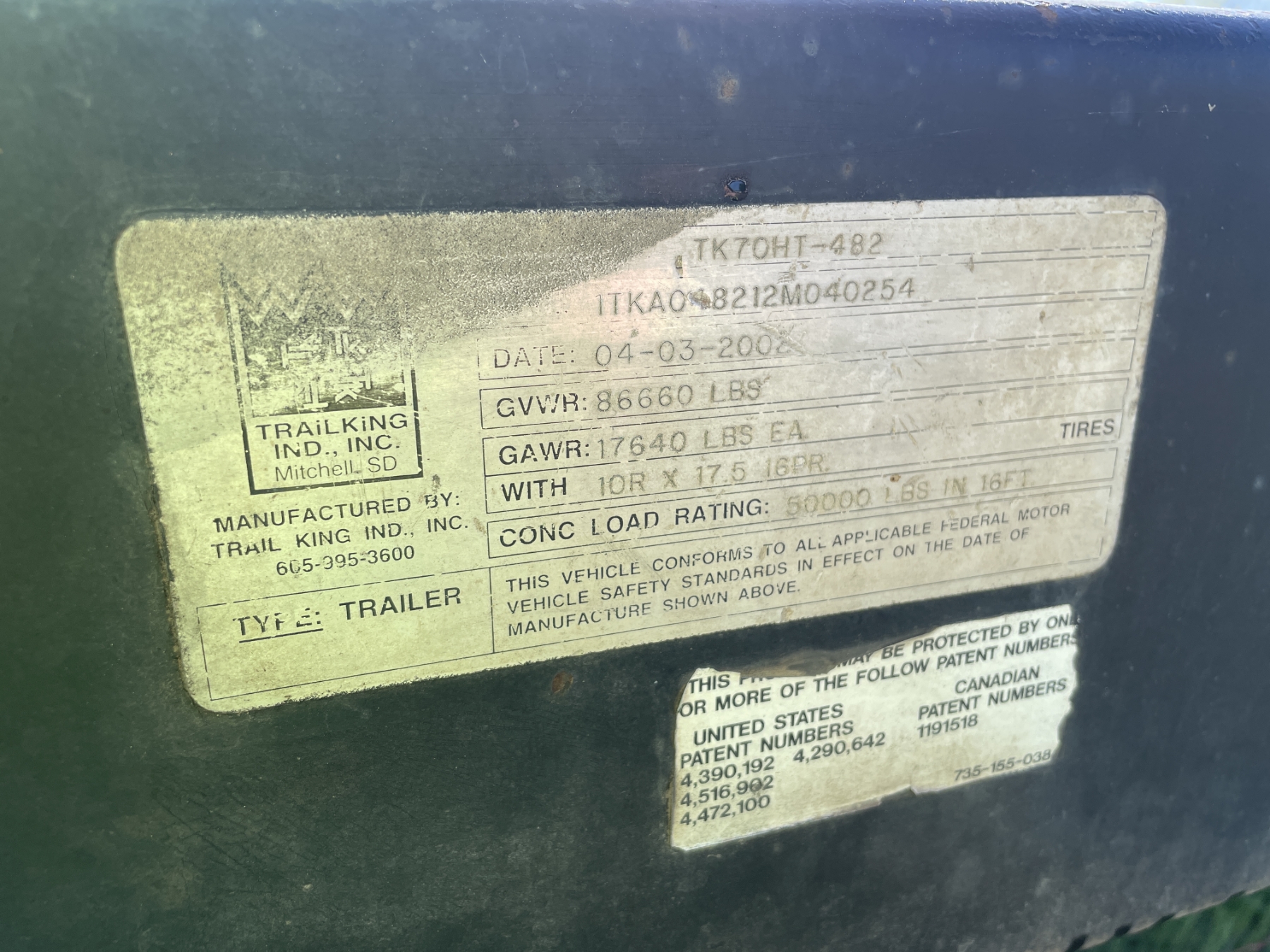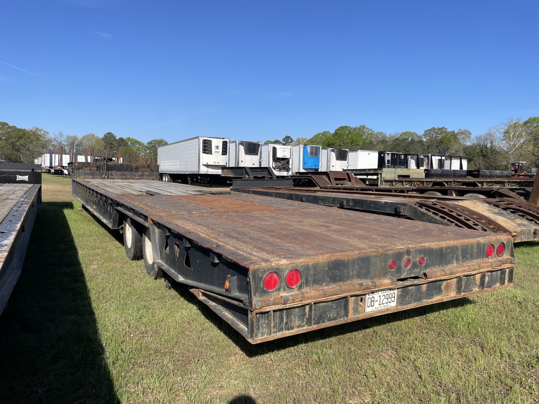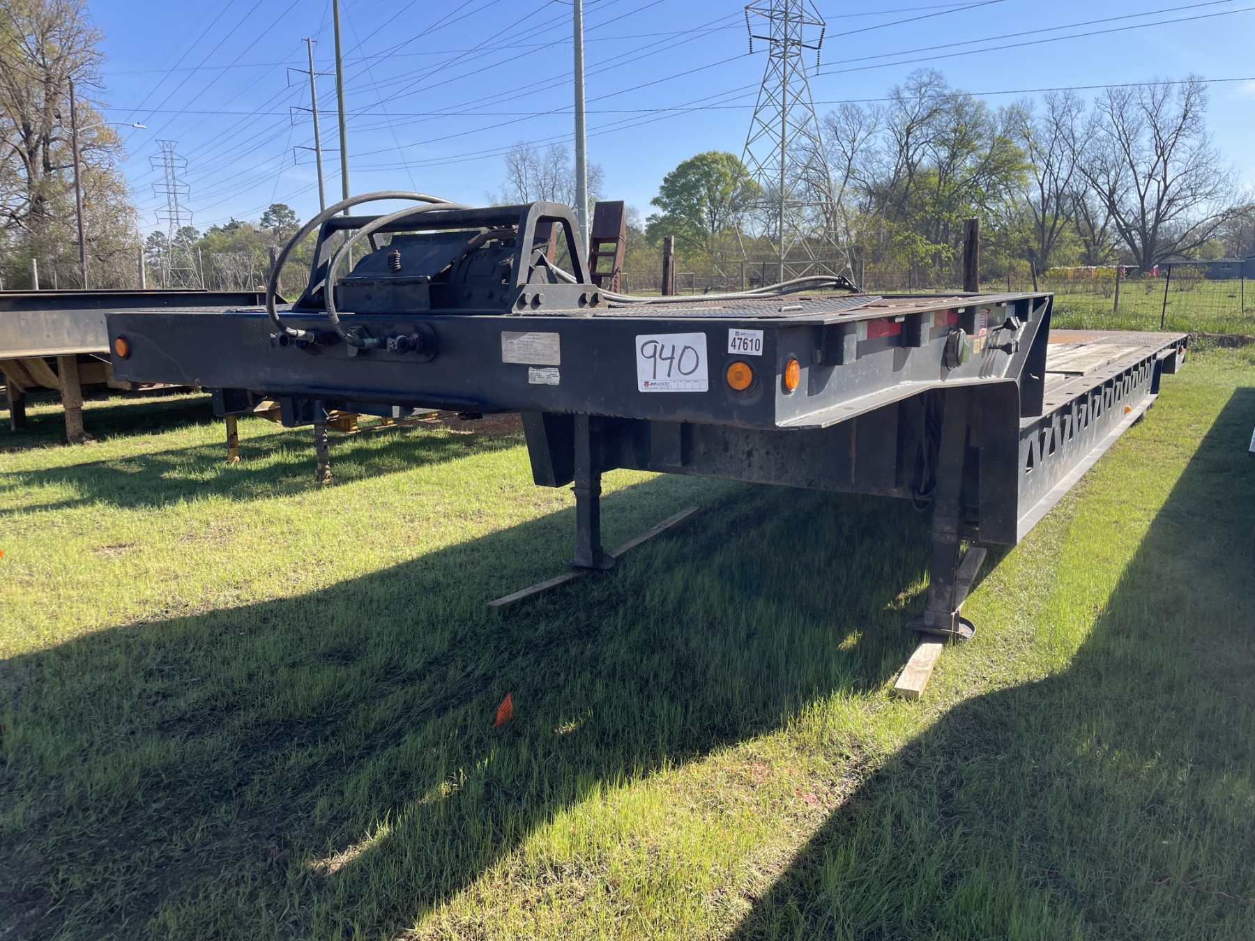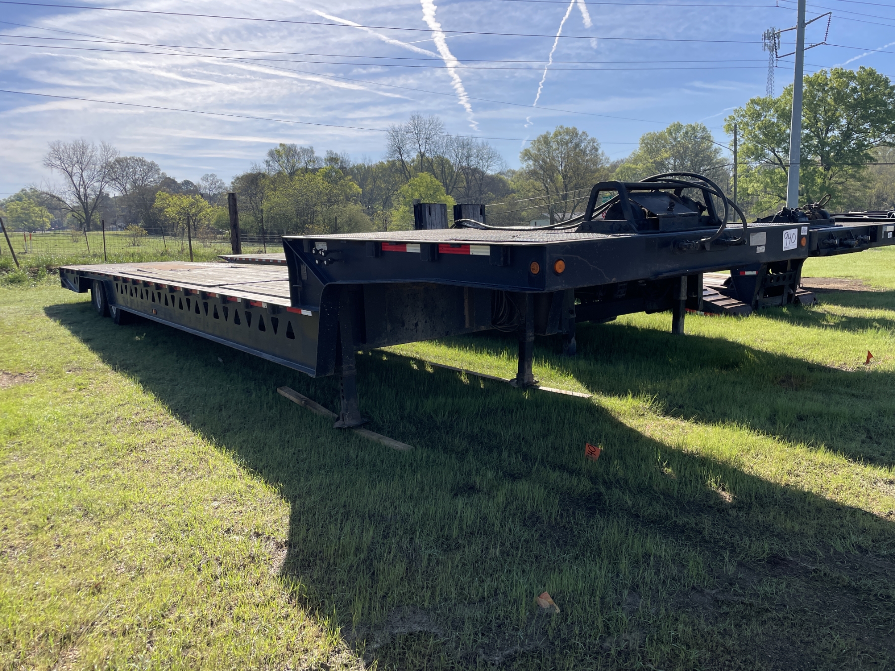 T/A, 48' length, 102" width, hyd motor grader ramp, hyd folding dovetail, winch, 10R17.5 tires