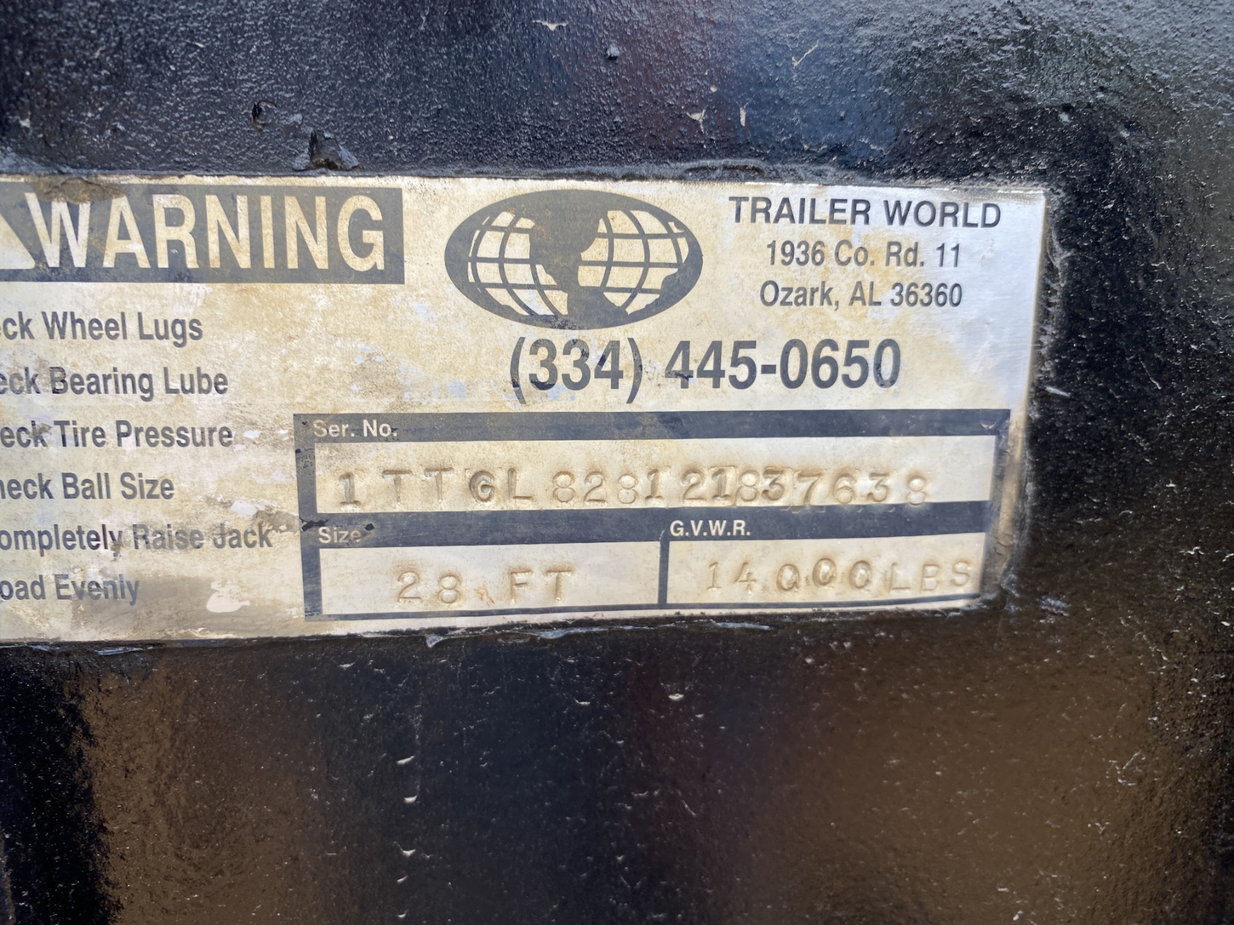 T/A, 28' length, 100" width