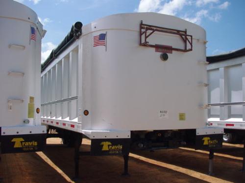 2002 TRAVIS 39' ALUMINUM DUMP TRAILER, S/N F39221001902, FRAMELESS, ROLLOVER TARP 60" HIGH SIDE WALLS, 2 WAY TAILGATE, BARN DOOR & AIR TAILGATE W/GRAIN DOOR, AIR RIDE SUSP, 295/75R22.5 TIRES, DISC WHEELS