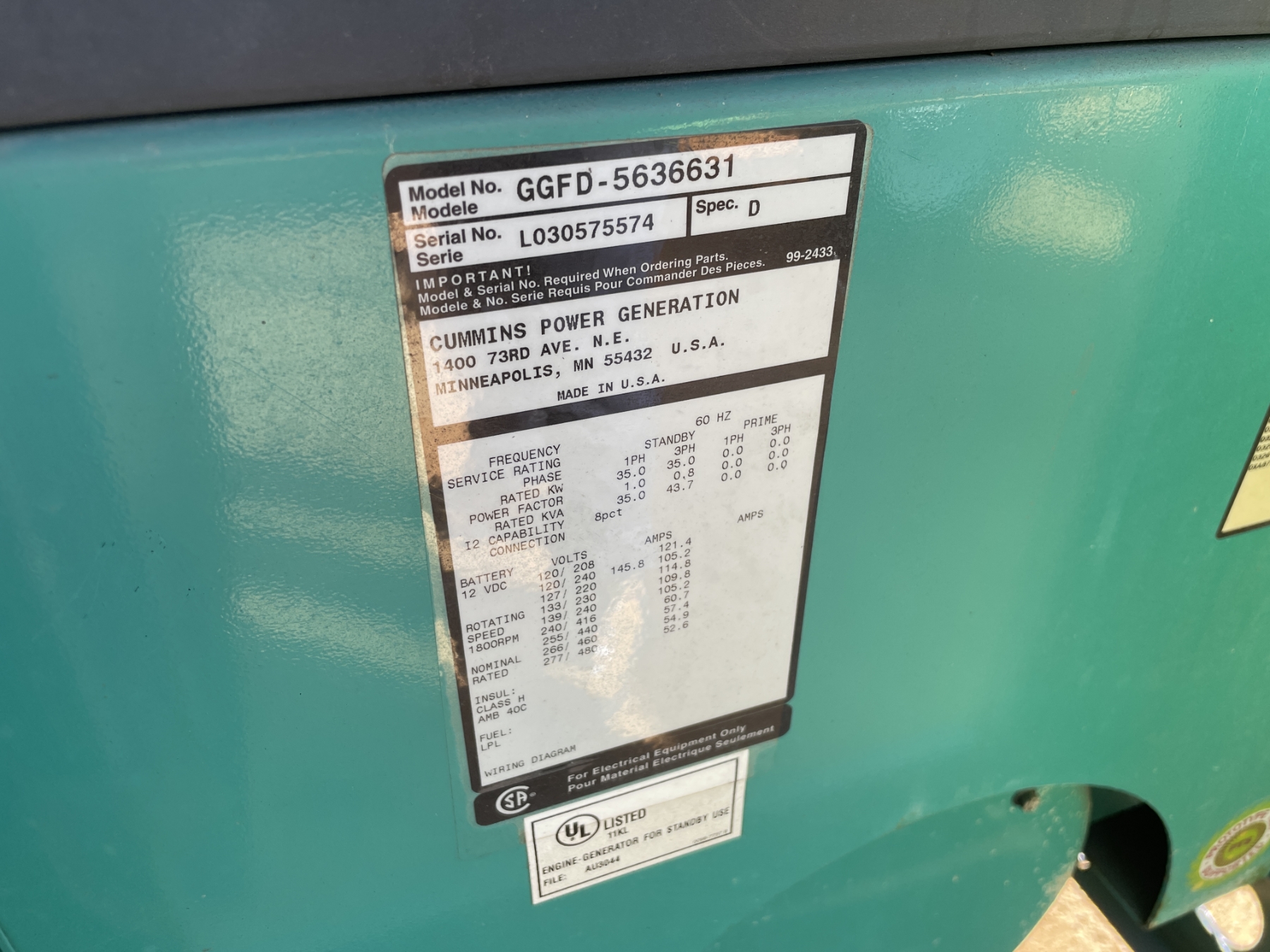 2003 CUMMINS GGFD 30KW Generator