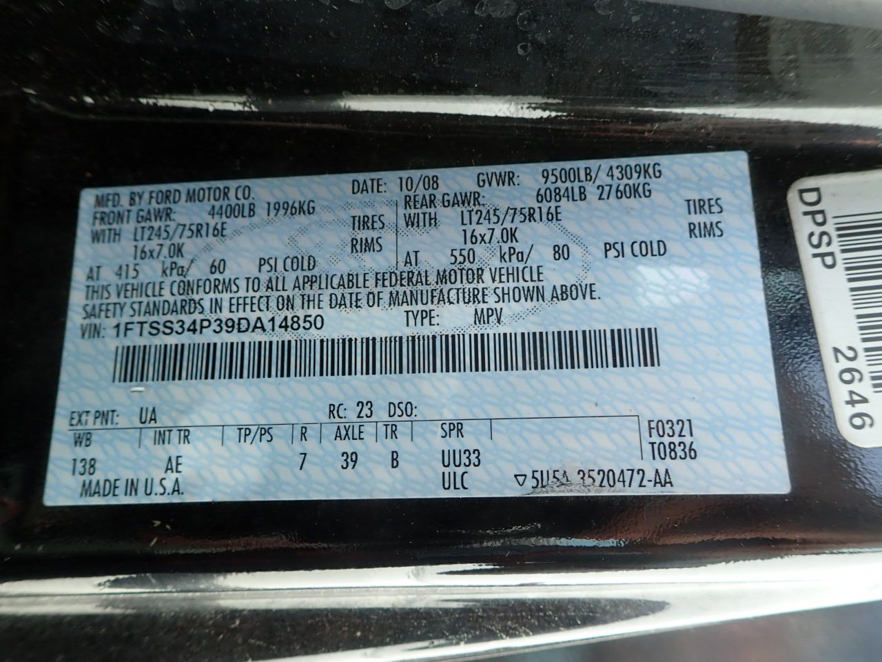 Vehicle ID Number: 1FTSS34P39DA14850