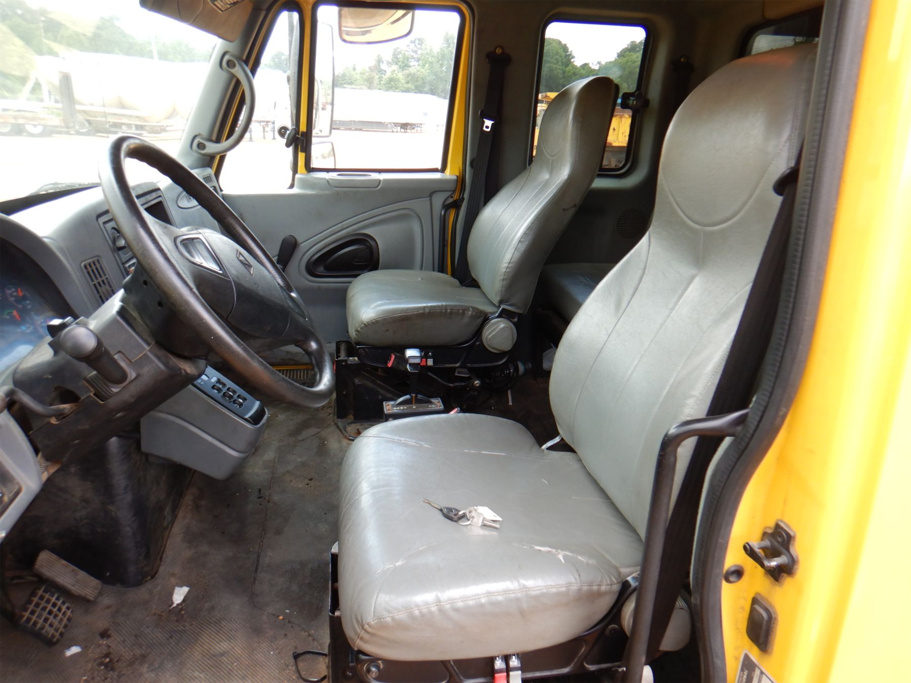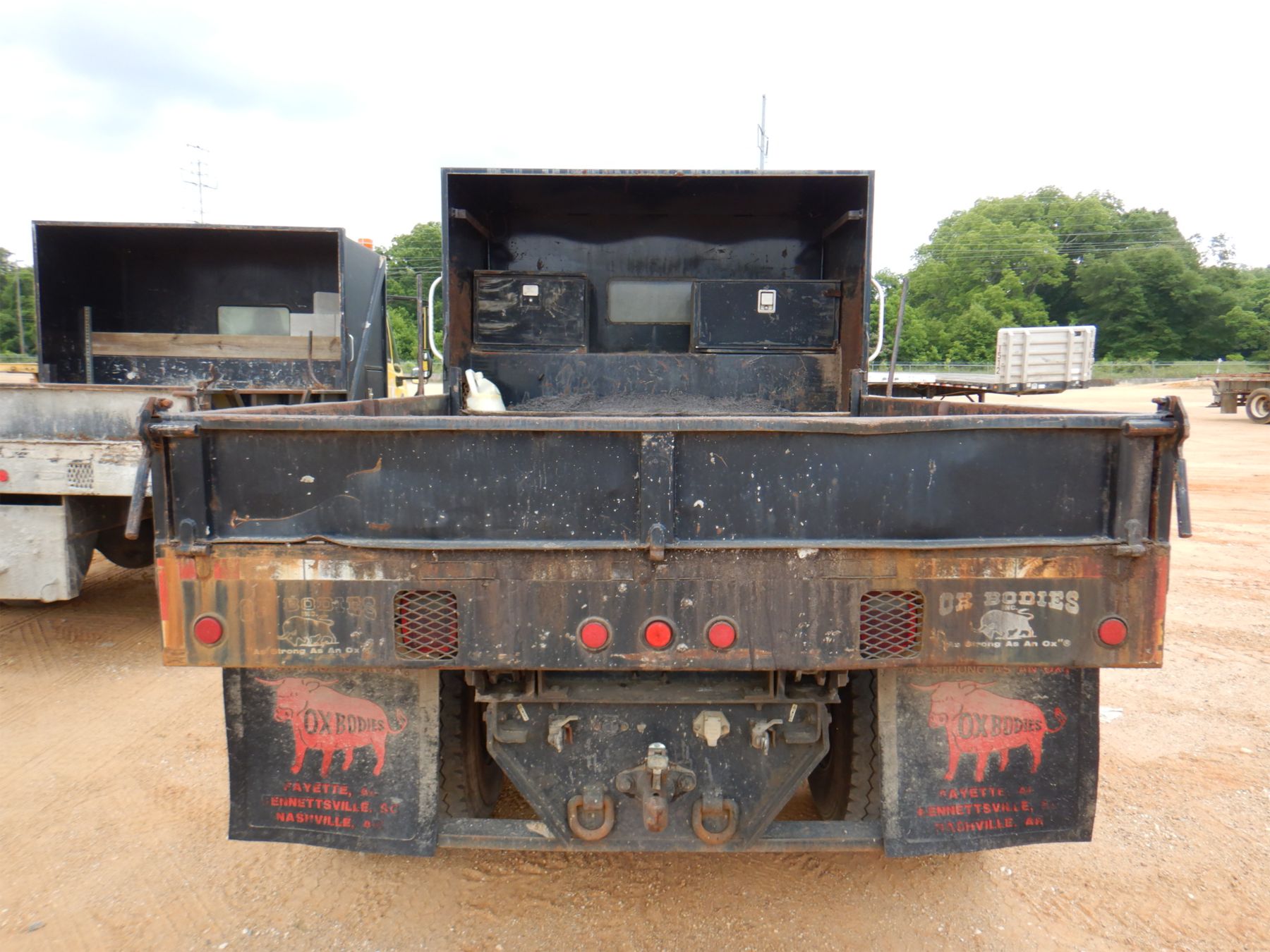 S/A, ext. cab, DT466 engine, Allison A/T, 33,000 lb. GVWR, 14' flatbed Ox Body