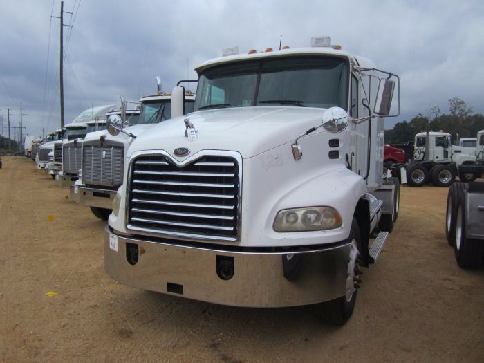 2003 MACK CX613 TRUCK TRACTOR, VIN/SN:1M1AE06Y23W014275 - T/A, 427HP MACK DIESEL ENGINE, 10 SPD TRANS, K REARS, 12K FRONT, ENGINE BRAKE, AIR RIDE SUSPENSION, 204" W/B, 11R22.5 REAR TIRES, STEEL DISC WHEELS, 11R22.5 FRONT TIRES, ALUM DISC WHEELS, ODOMETER READING 1,212,352 MILES