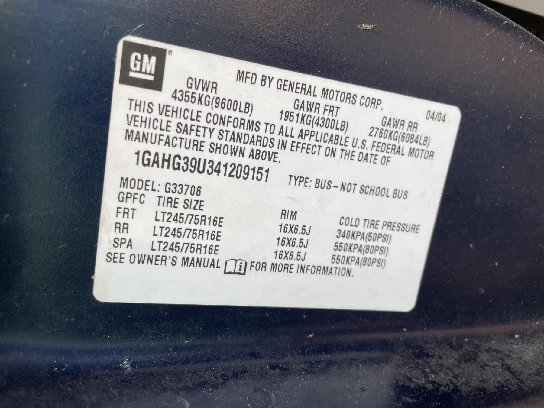 Vehicle ID Number: 1GAHG39U341209151