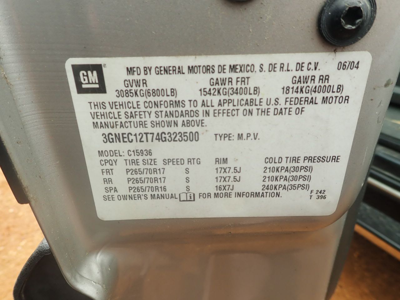Vehicle ID Number: 3GNEC12T74G23500