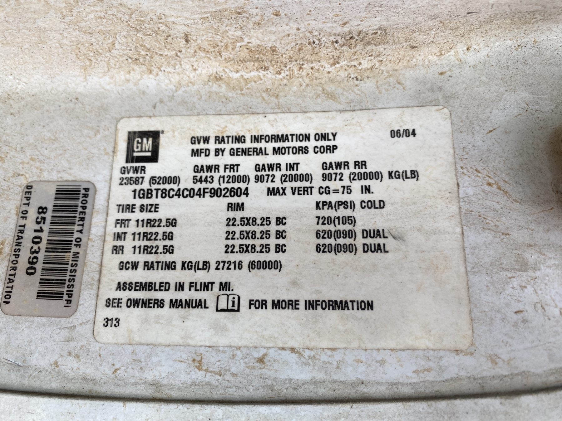 Vehicle ID Number: 1GBT8C4C04F902604
