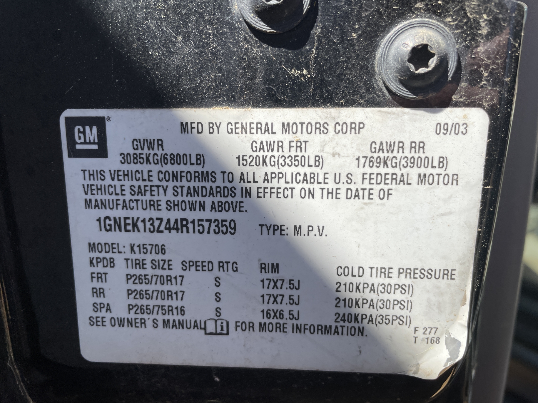 Vehicle ID Number: 1GNEK13Z44R157359