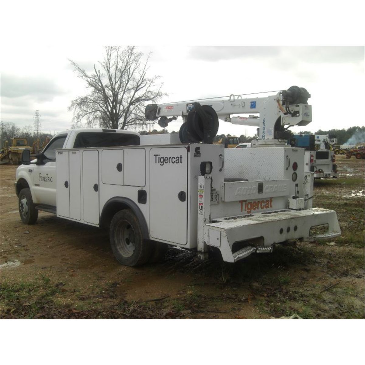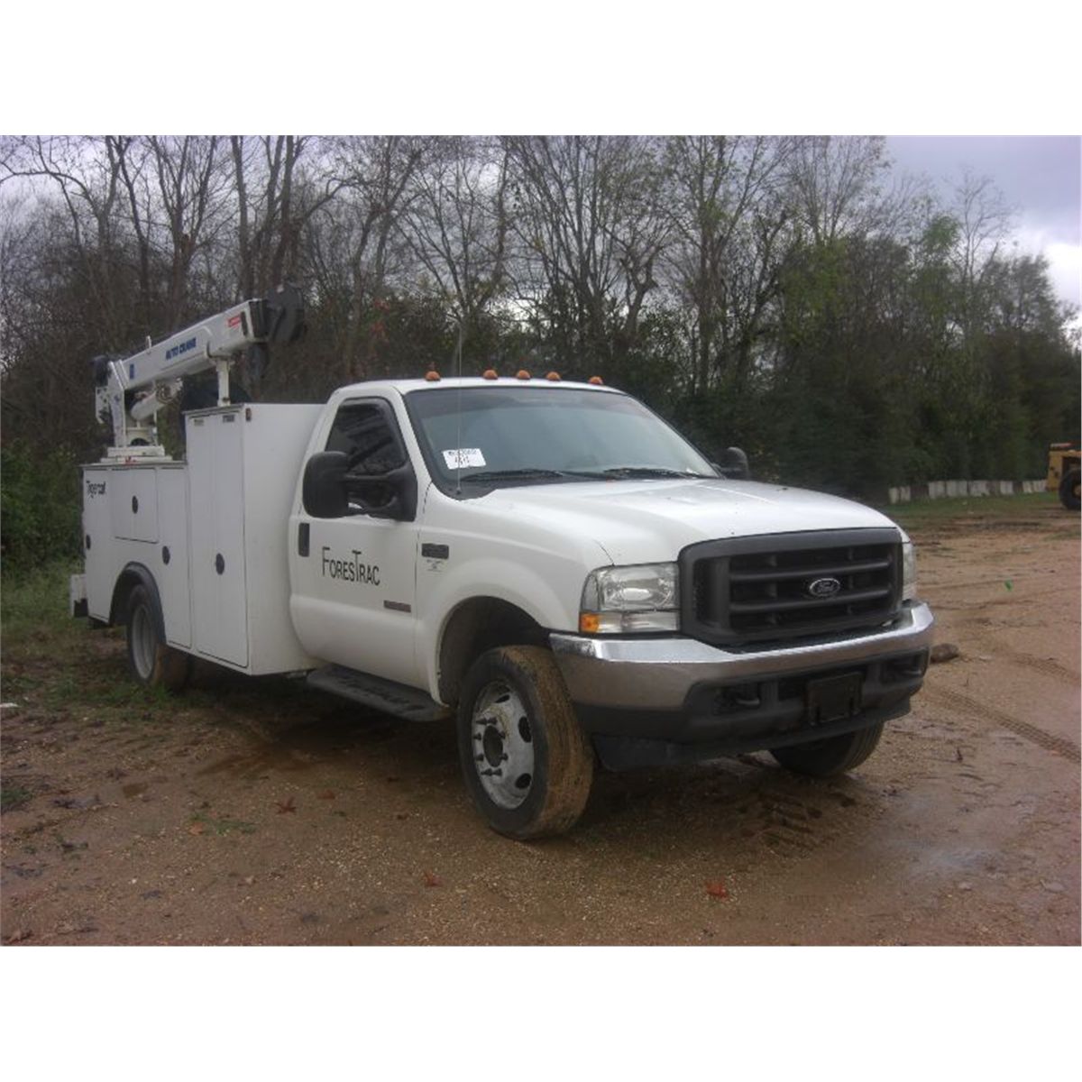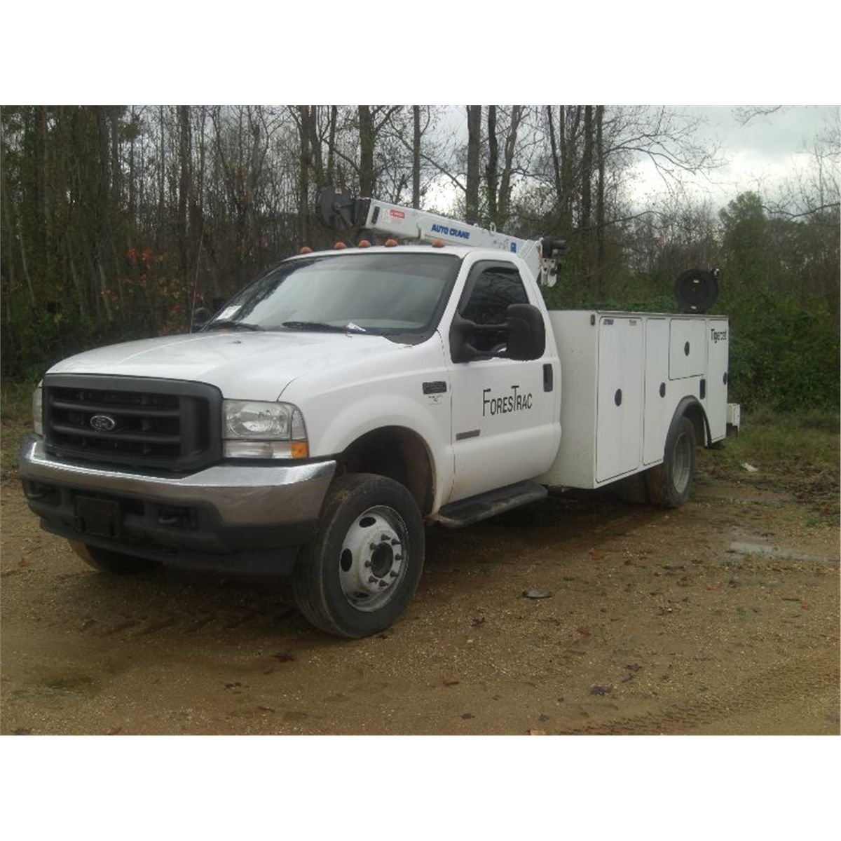 2004 FORD F550 XL SERVICE TRUCK, S/N 1FDAF56P64EC07792, POWER STROKE DIESEL ENG, 5 SPEED TRANS, A/C, P/S, REAR TOOL BODY, FUEL TANK, 6406 AUTO CRANE, HYDRAULIC, OUTRIGGERS
