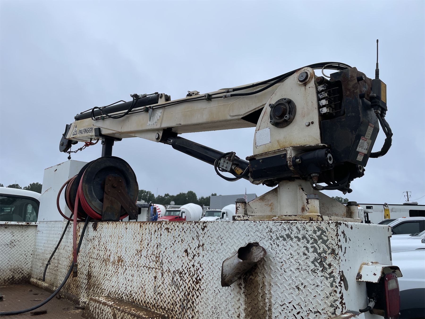 PowerStroke diesel engine, 5 speed trans, Palfinger PSC3000A service crane, Reading service body, hose reels