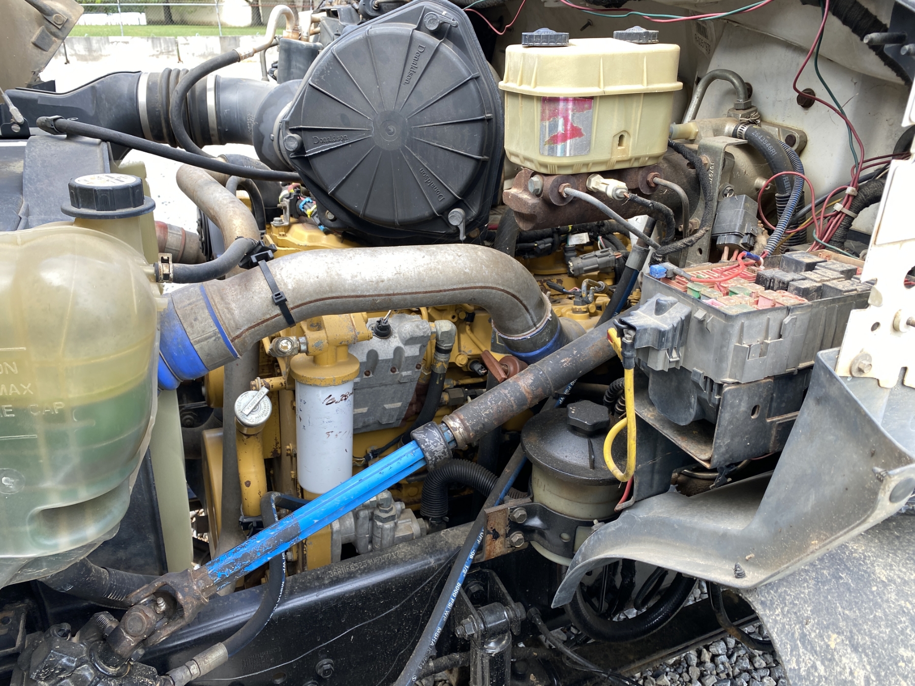 S/A, Cat C7 engine, A/T, 14' steel bed, tarp, pintle hitch