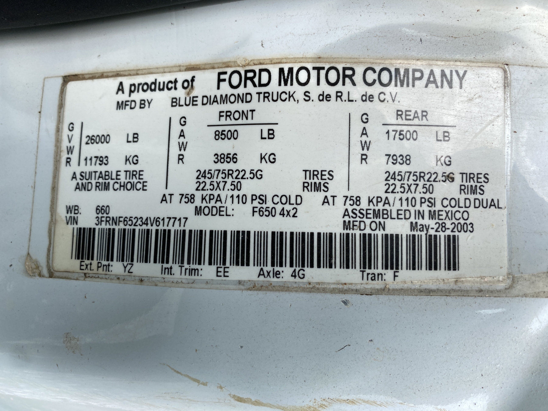 Vehicle ID Number: 3FRNF65234V617717