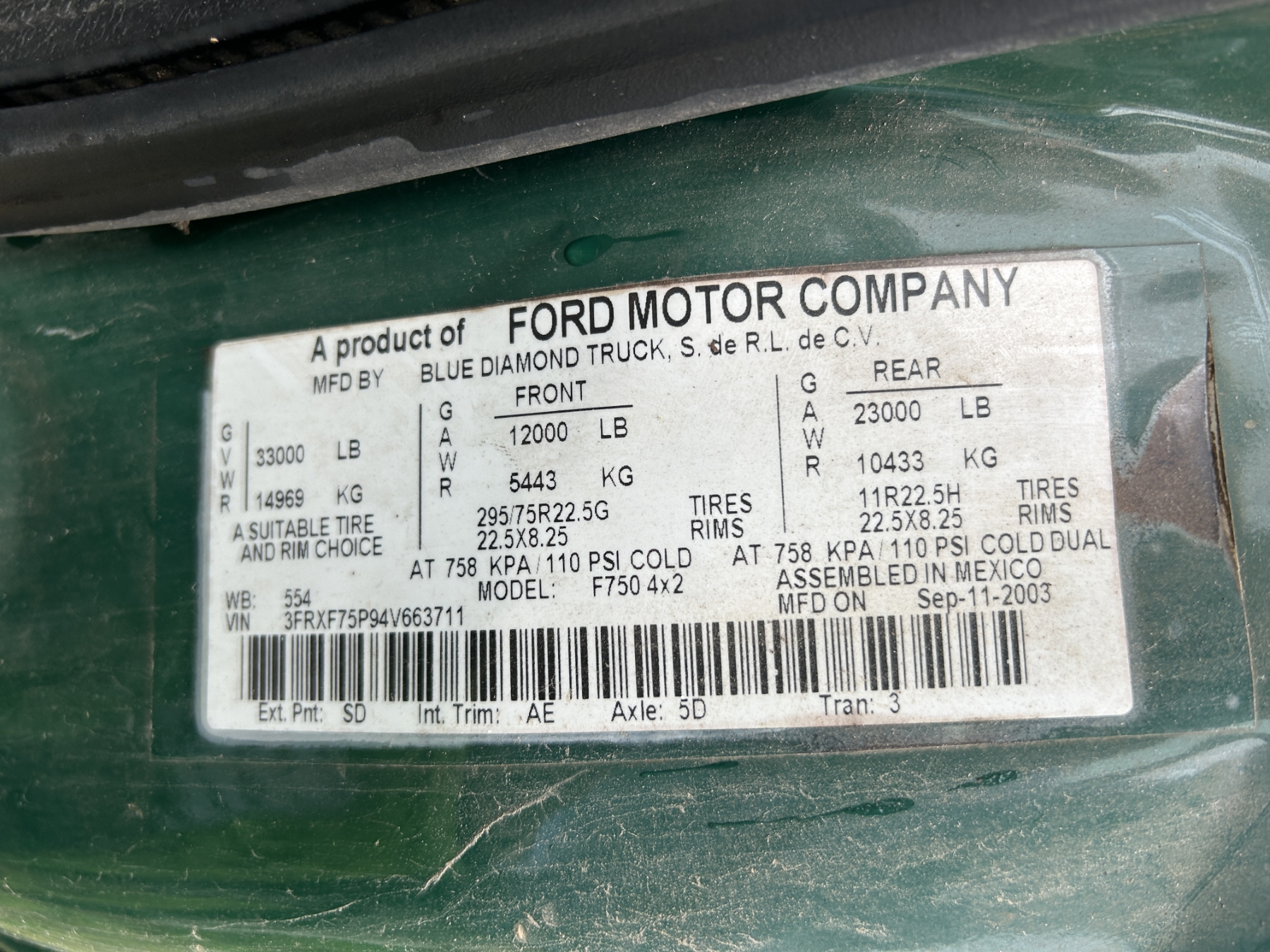 Vehicle ID Number: 3FRXF75P94V663711