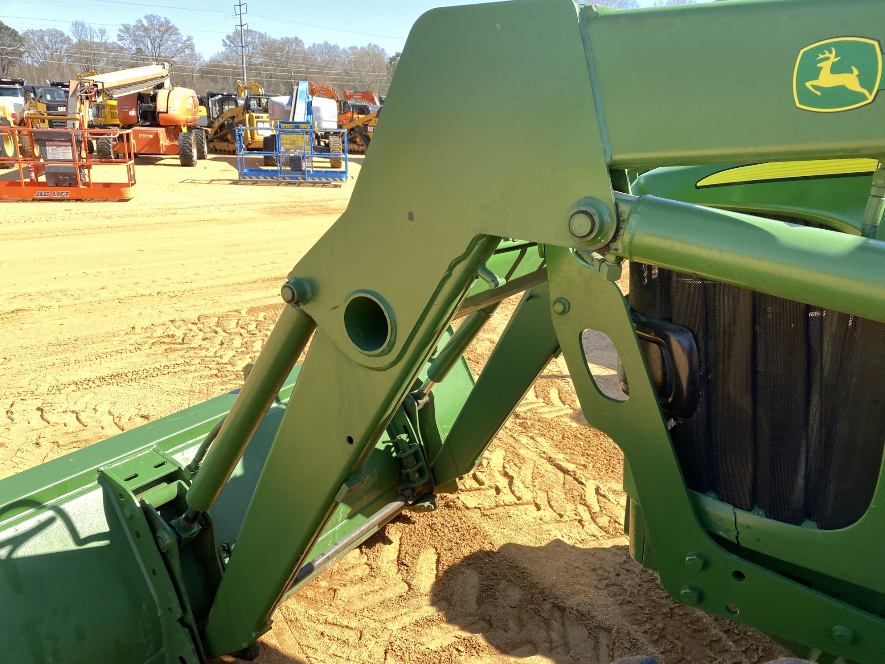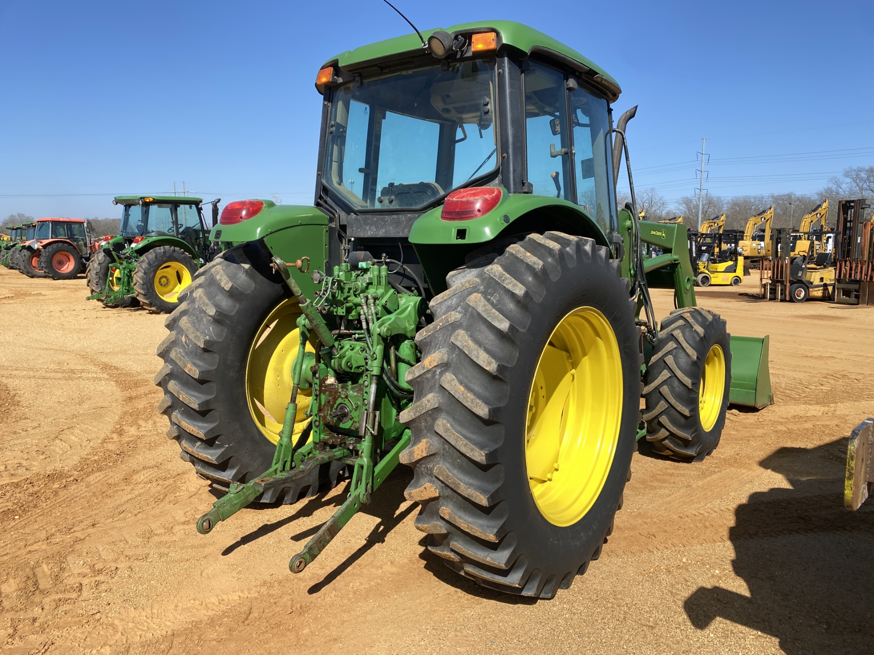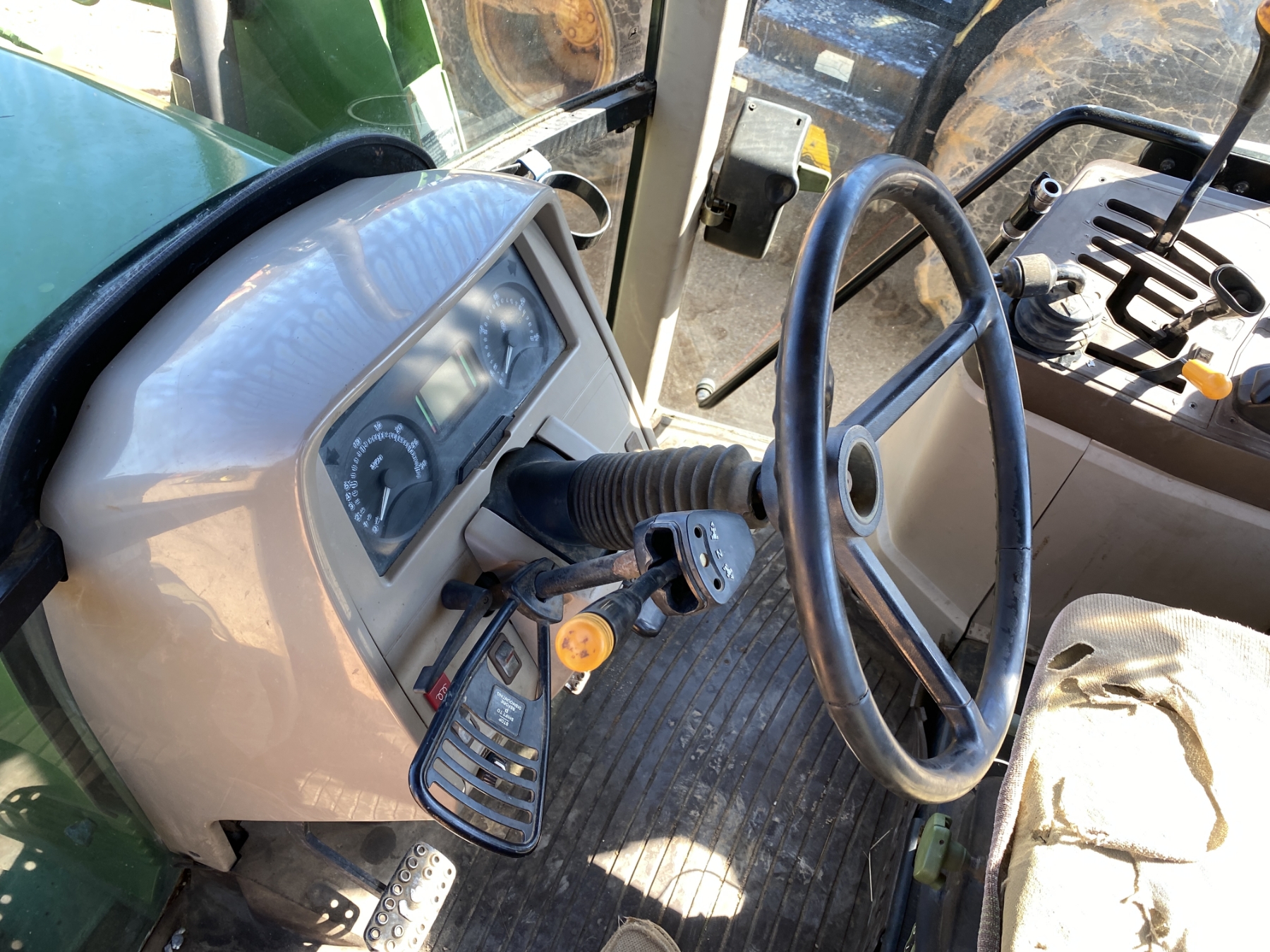 MFWD, (3) remotes, John Deere front loader attach, bucket, cab, A/C, 18.4-38 rear tires, 13.6-24 front tires