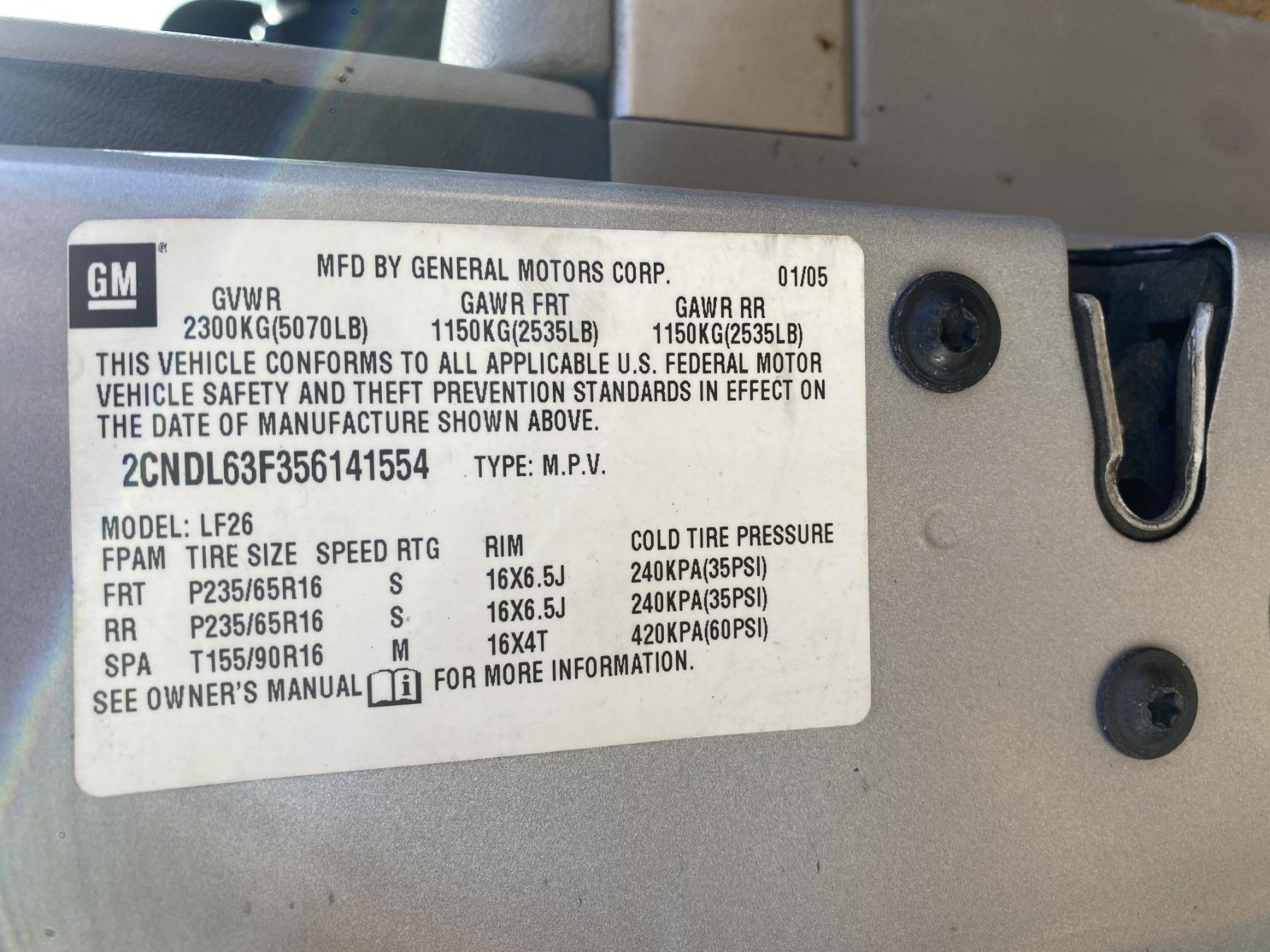 Vehicle ID Number: 2CNDL63F356141554