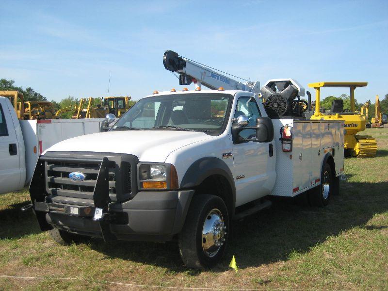 2005 FORD F550 4X4 SERVICE TRUCK, S/N 5ED35309, POWER STROKE DIESEL, A/T, P/S, A/C, 6,006# AUTO CRANE, HYD AIR COMPRESSOR