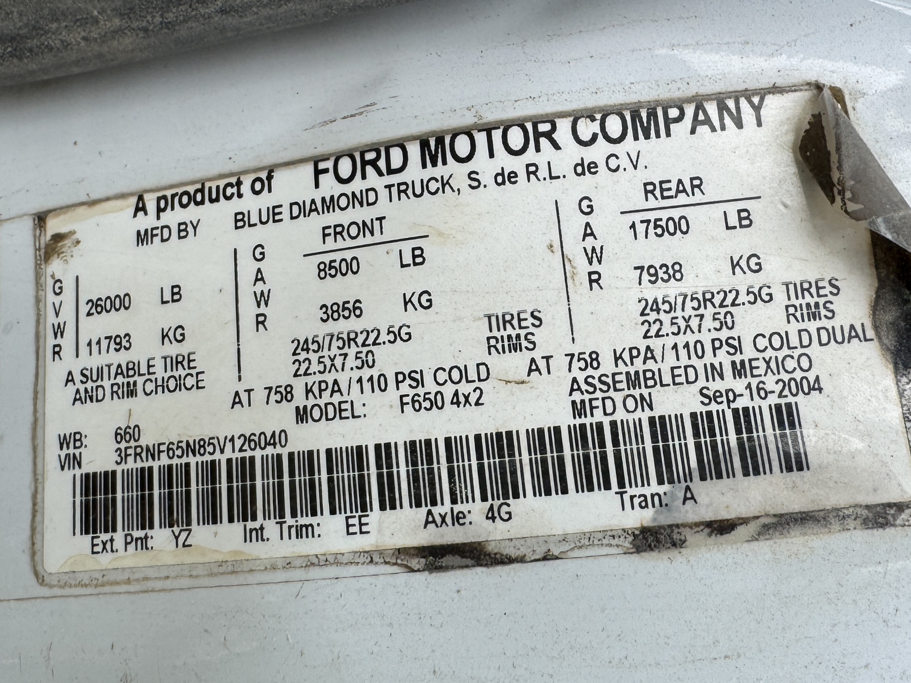 Vehicle ID Number: 3FRNF65N85V126040