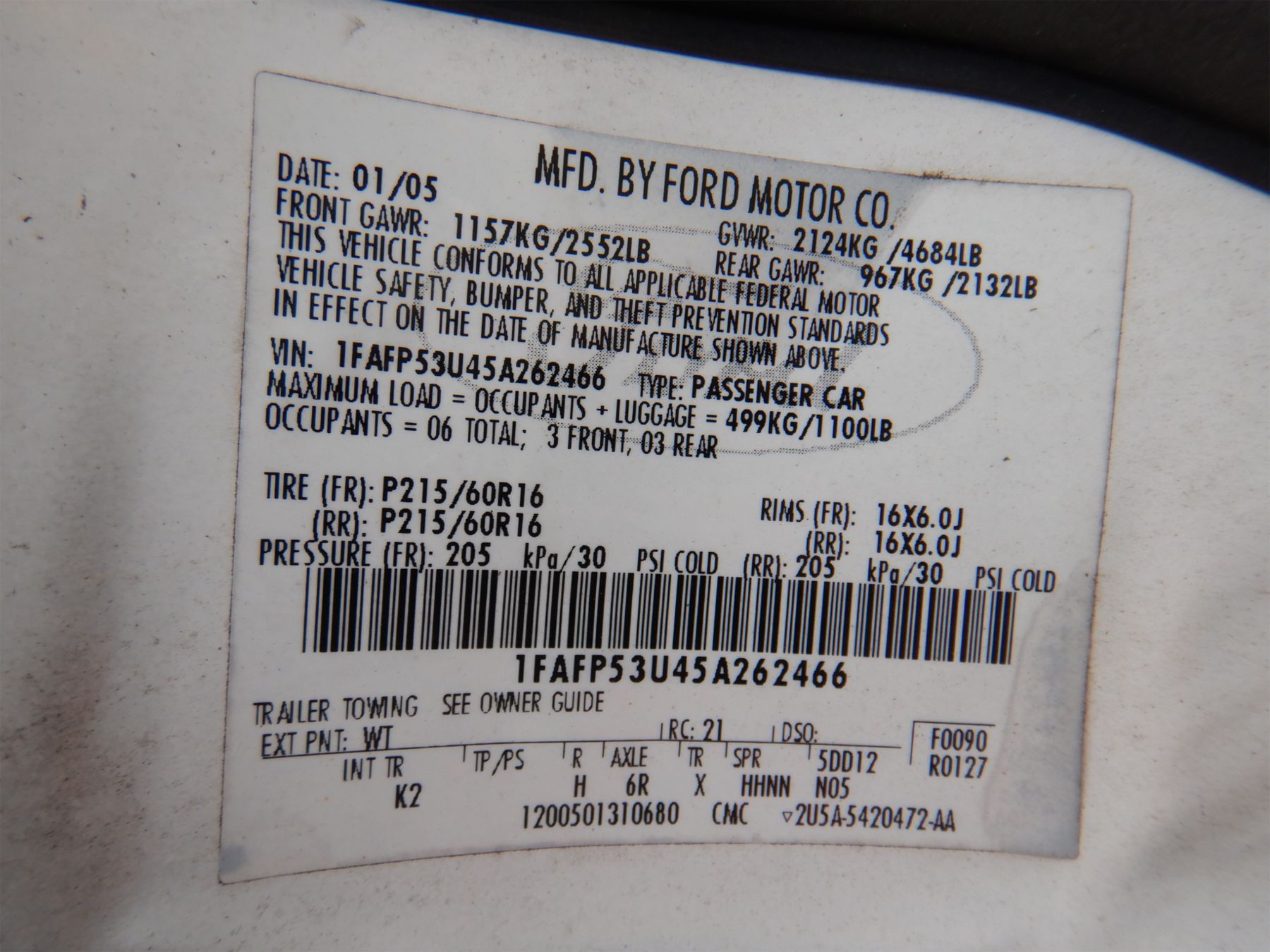 Vehicle ID Number: 1FAFP53U45A262466