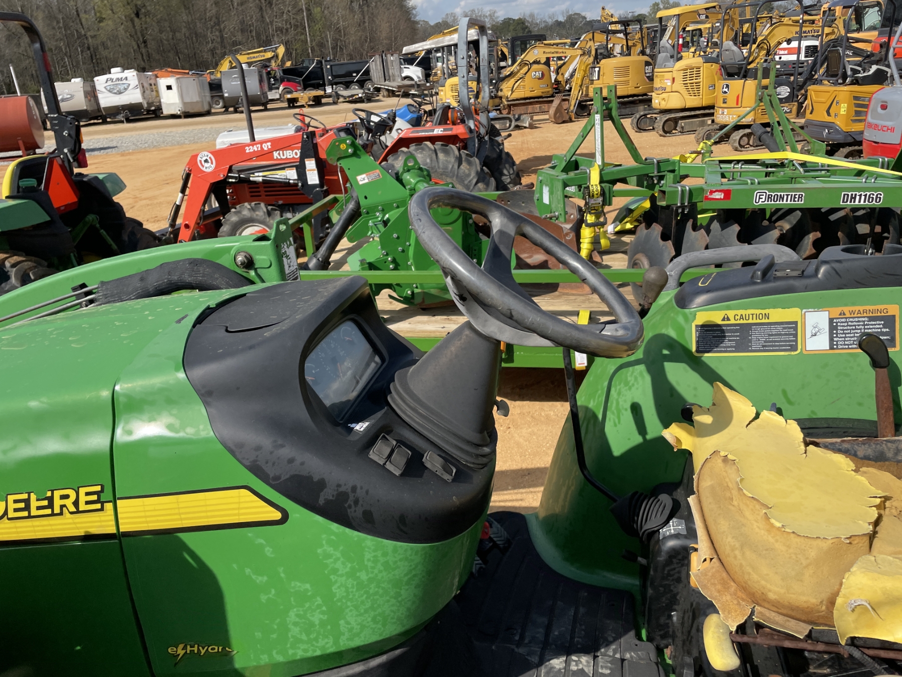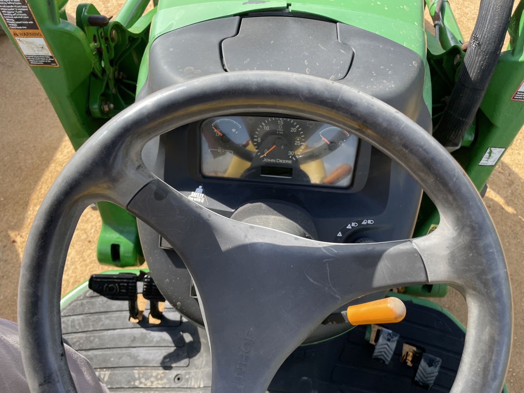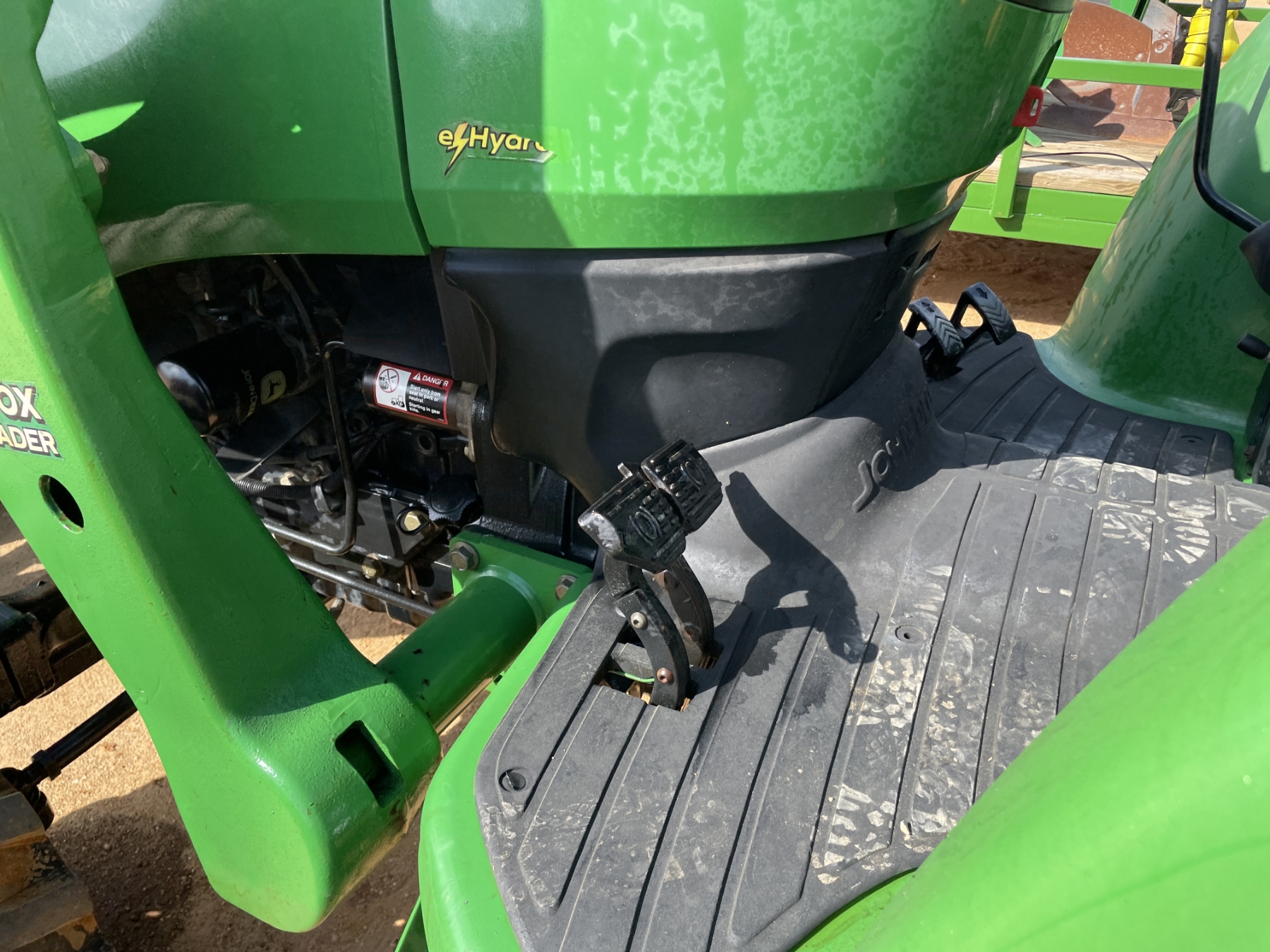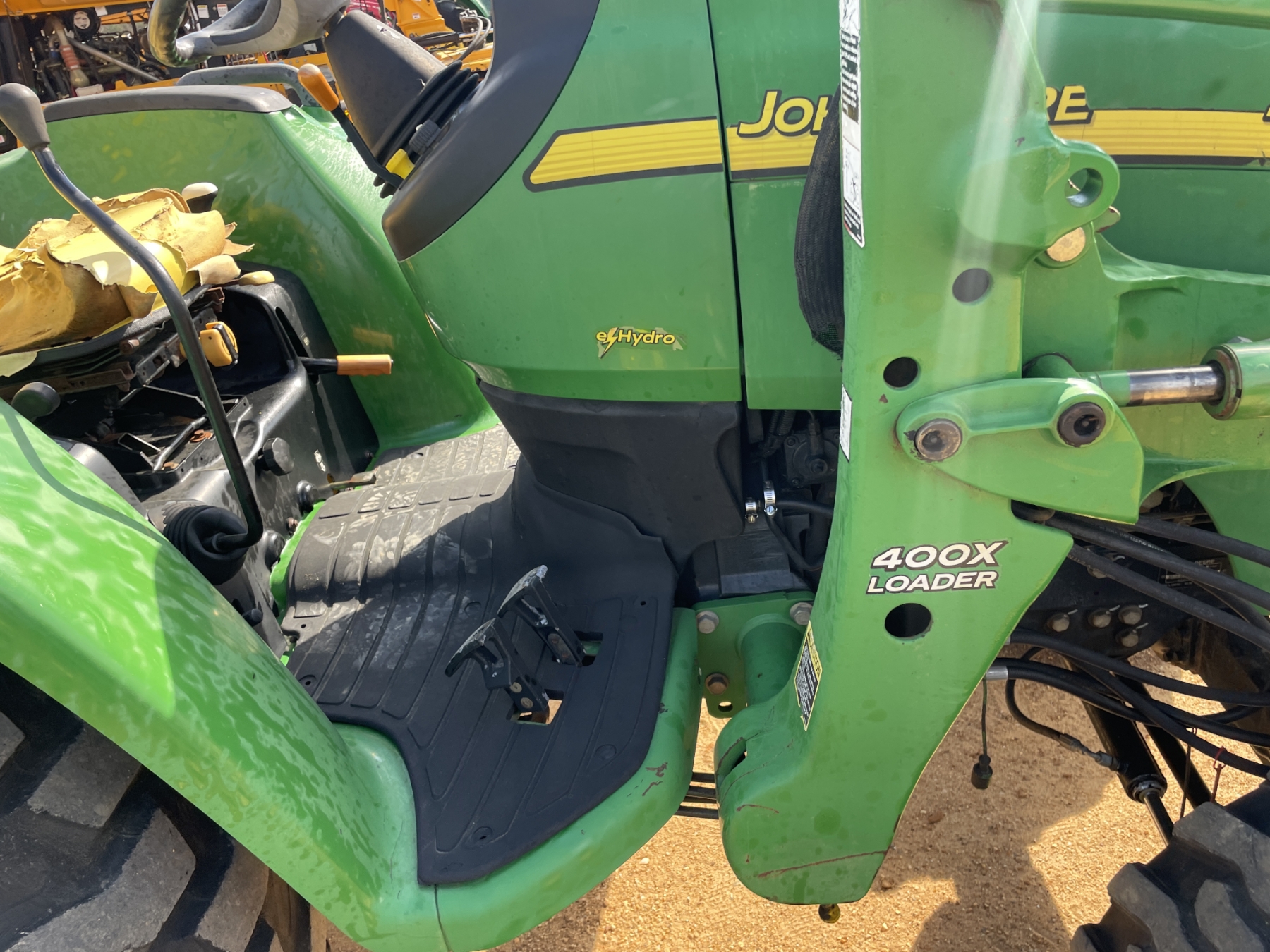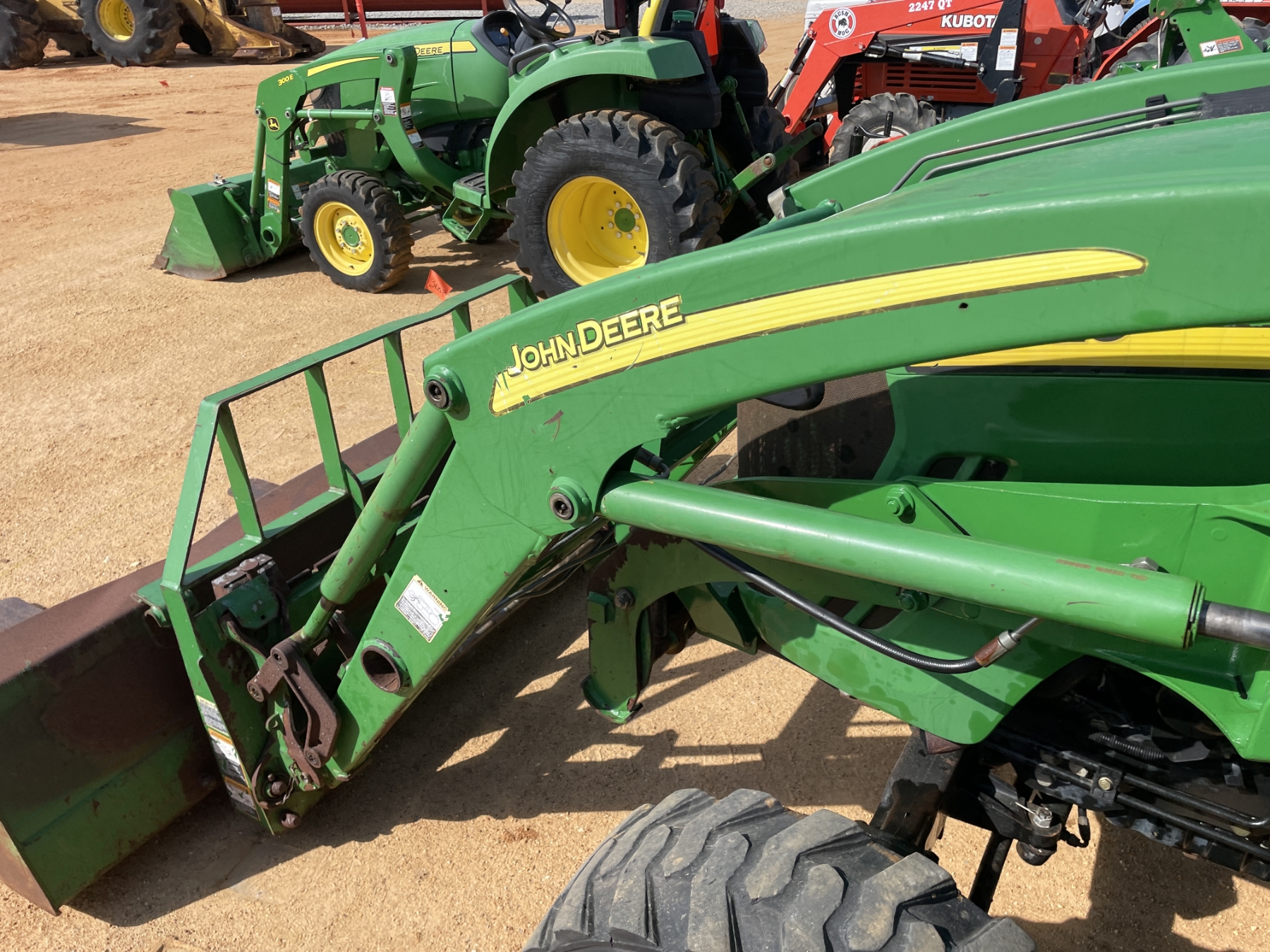 MFWD, (1) remote, John Deere 400X front loader attach, forks, bucket, roll bar, 17.5-24 rear tires, 10-16.5 front tires