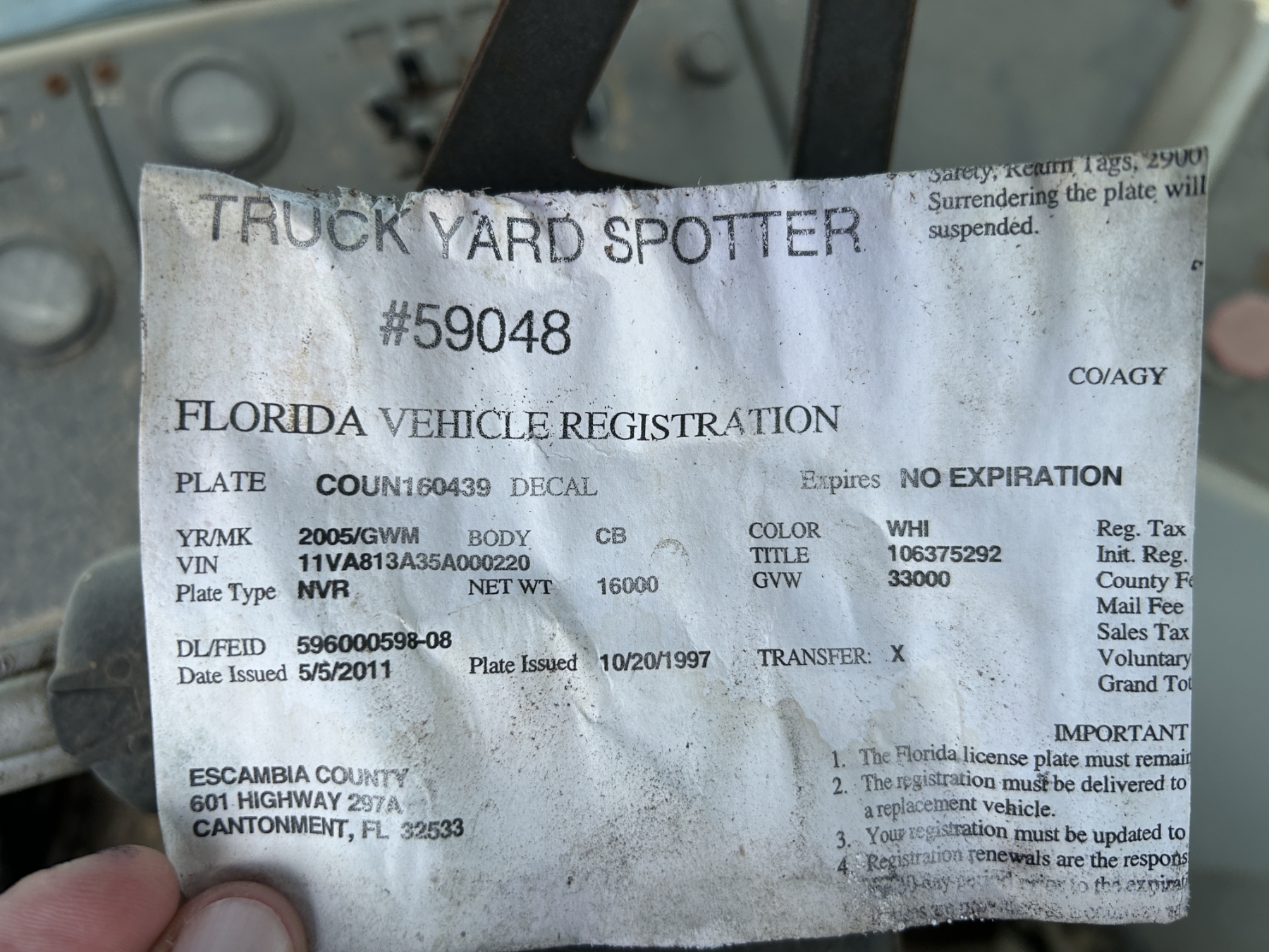 S/A, diesel, A/T, (Inoperable), Selling Offsite: Located in Cantonment, FL, Pre-Auction Inspection is by appointment. Call Karrah Shremshock at 850-554-2782. Item must be removed by October 9, 2024.