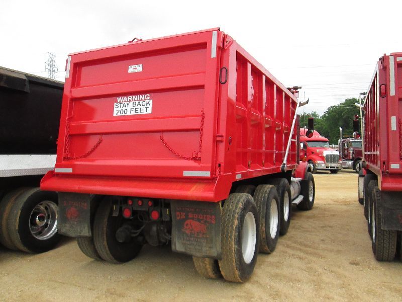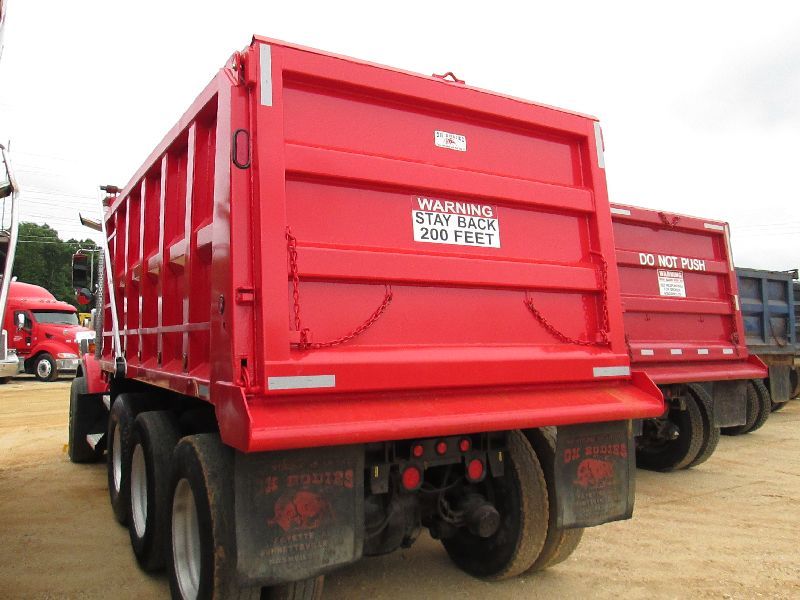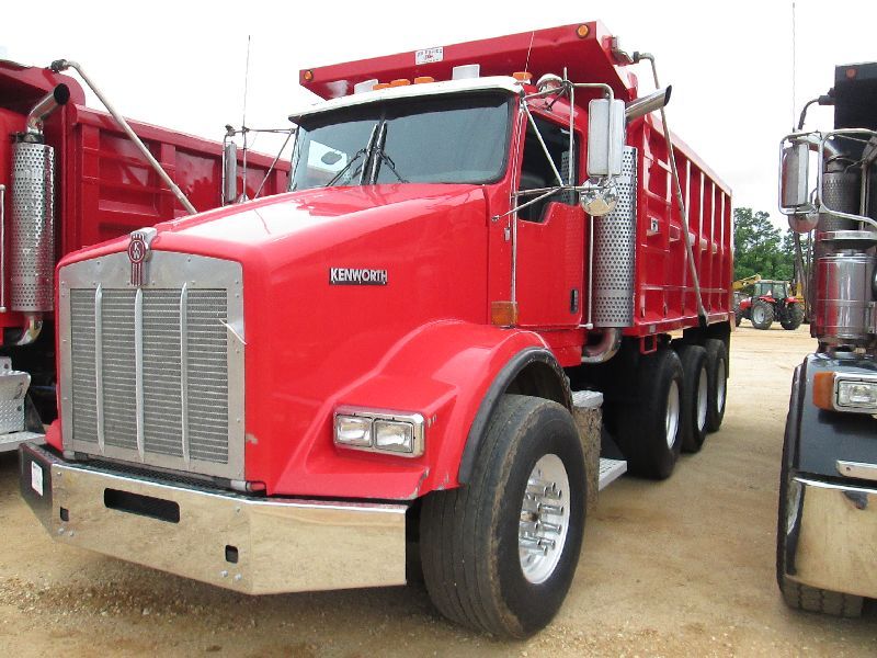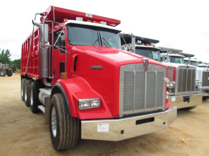 2005 KENWORTH T800 TRI-AXLE DUMP, S/N 1NKDX6TX35J071968, C15 475 HP CAT DIESEL ENG, 8LL TRANS, P/S, A/C, ENGINE BRAKE, 16' OX STEEL DUMP BODY, ELEC TARP, AIR TAILGATE, 11R24.5 REAR TIRES ON DISC WHEELS, 425/65R22.5 FRONT TIRES ON ALUM DISC WHEELS