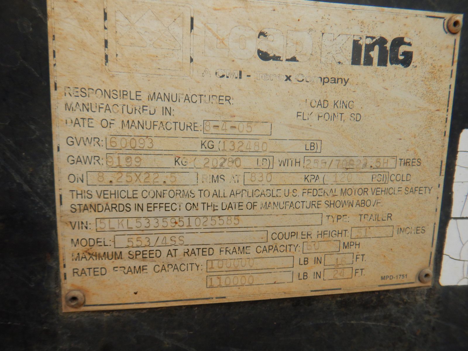 2005 LOAD KING 553/4SS Lowboy Trailer