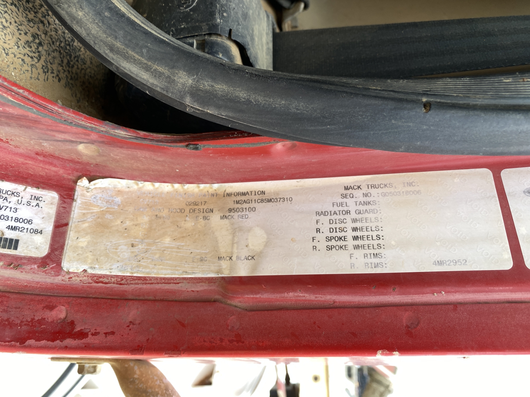 Vehicle ID Number: 1M2AG11C85M037310