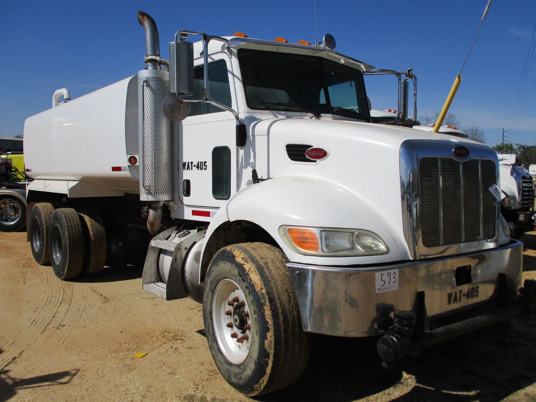 2005 PETERBILT 335 WATER TRUCK, VIN/SN:2NPLLDOX95M877226 - T/A, CAT C7 ENGINE, 8LL FULLER TRANS, 40K REARS, 18K FRONT, UNITED 4,500 GALLON WATER TANK, FRONT, REAR, SIDE DISCHARGE, ODOMETER READING 42,380 MILES