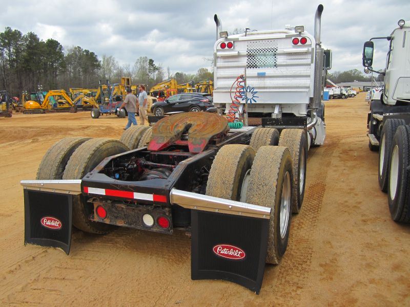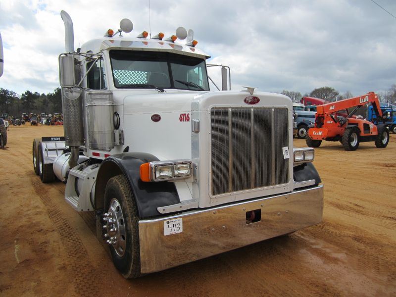 2005 PETERBILT 379 T/A TRUCK TRACTOR, S/N 1XP5DB9X45N845674, 435 HP CAT C-15 ENGINE, 13 SPD TRANS, 38K REARS, 12K FRONT, ENGINE BRAKE, ALUM HEADACHE RACK, 11R22,5 TIRES ON DISC WHEELS, ODOMETER READING 704,492