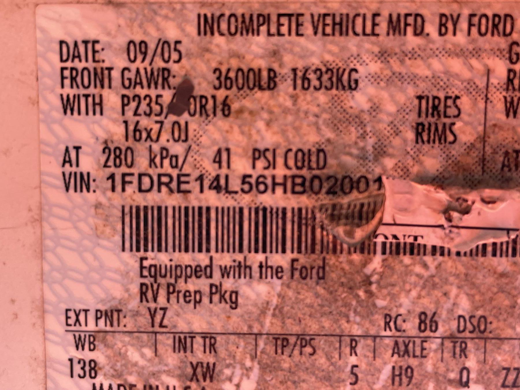 Vehicle ID Number: 1FDRE14L56HB02001