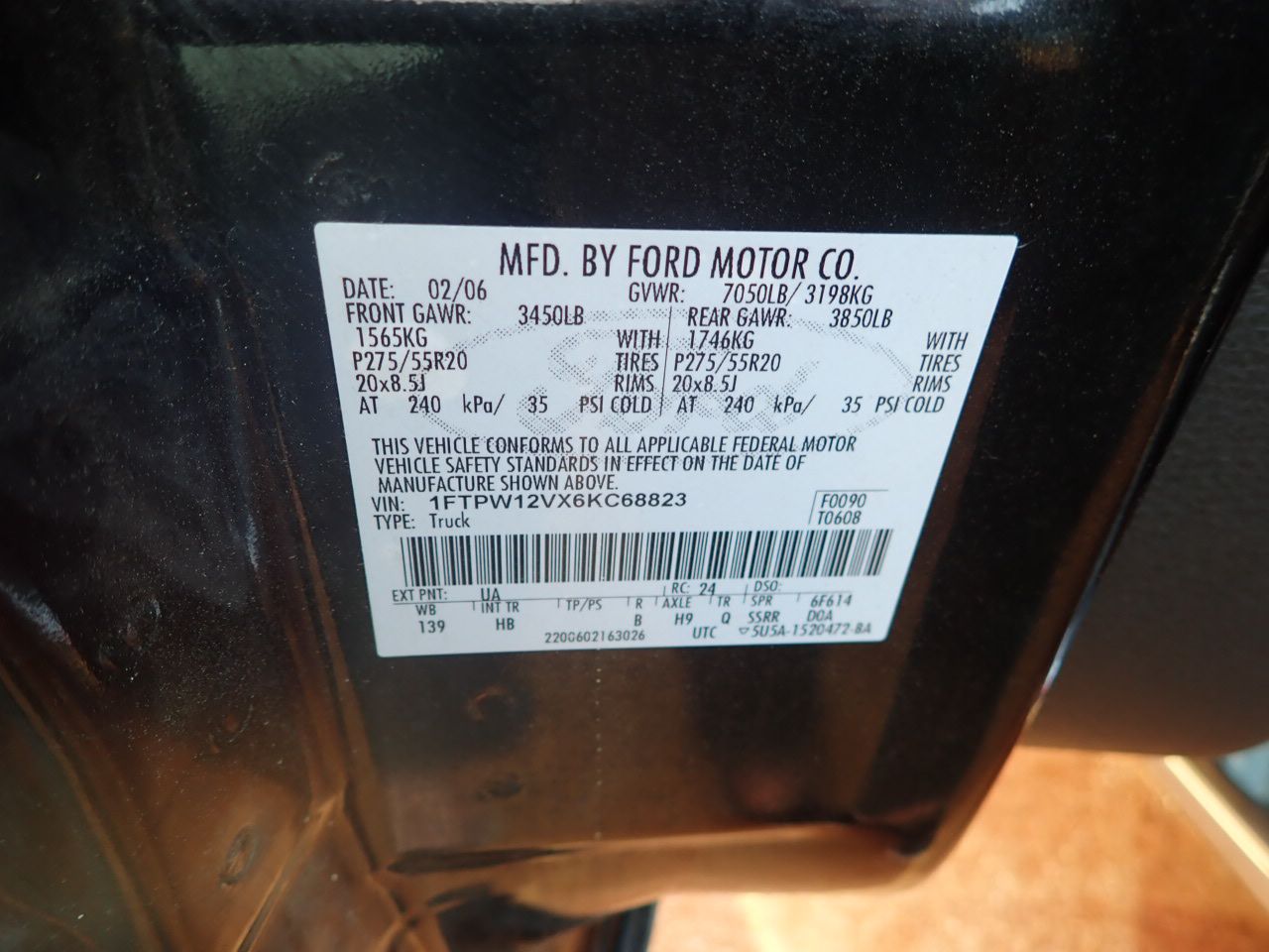 Vehicle ID Number: 1FTPW12VX6KC68823
