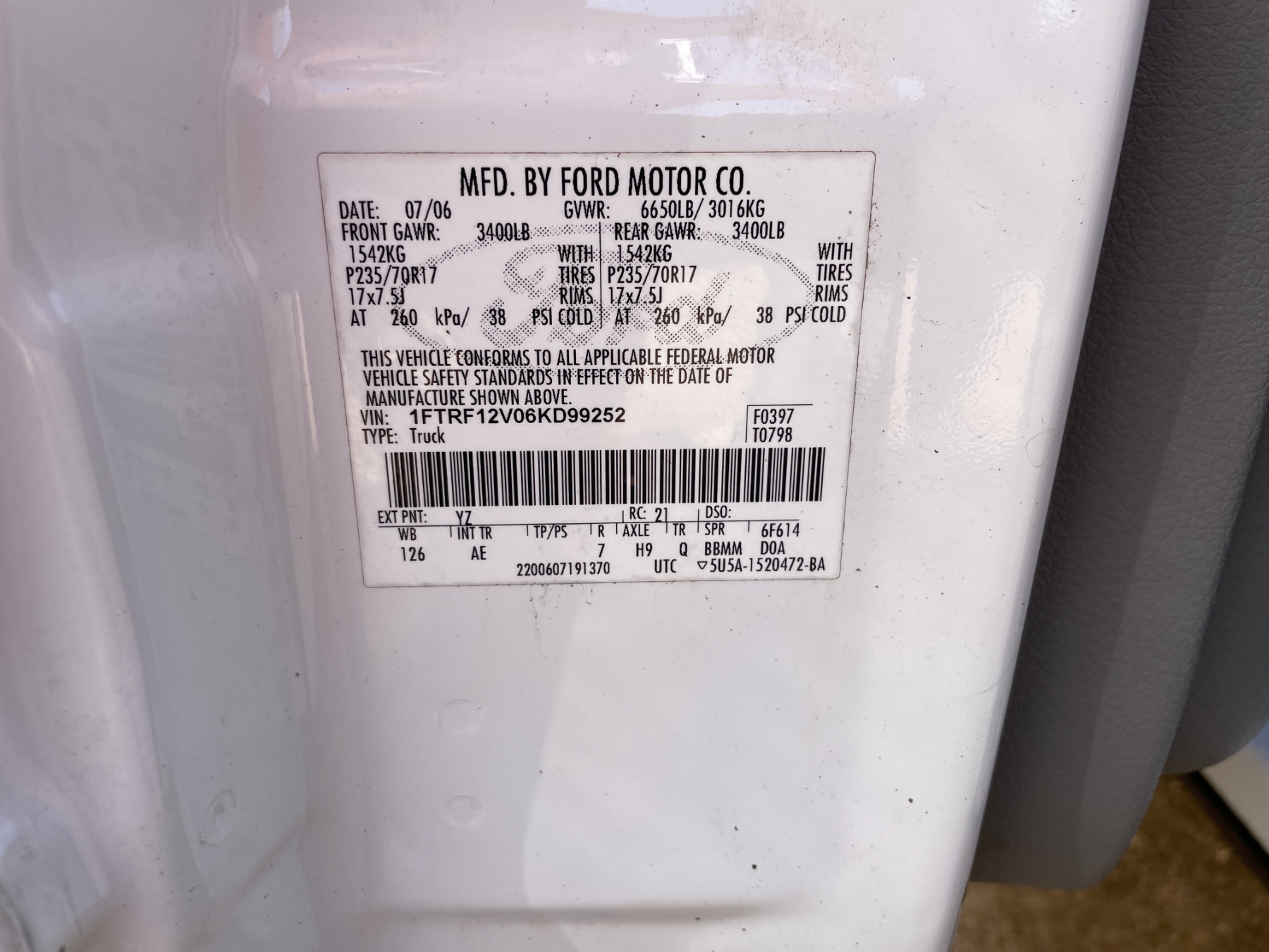 Vehicle ID Number: 1FTRF12V06KD99252
