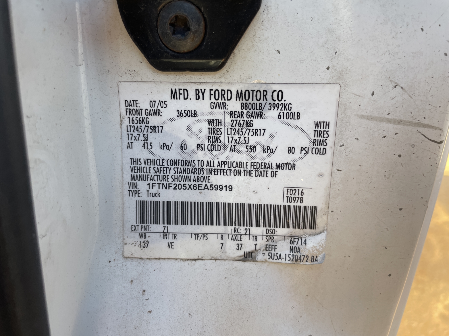 Vehicle ID Number: 1FTNF205X6EA59919