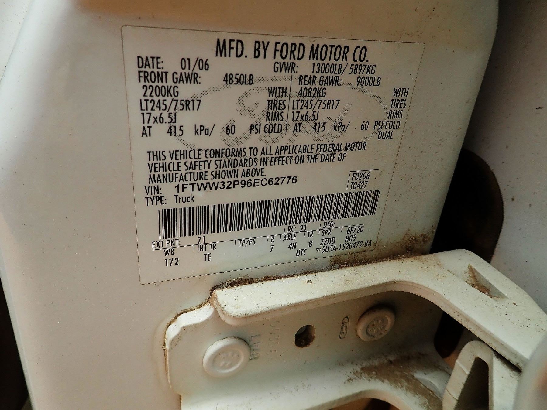 2006 FORD F350 PICKUP, VIN/SN:1FTWW32P96EC62776 - CREW CAB, POWERSTROKE, DIESEL ENGINE, A/T, ODOMETE